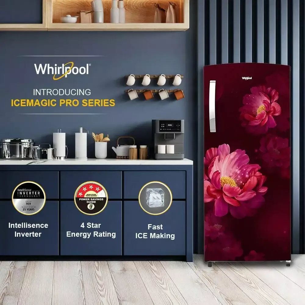 Whirlpool 215 IMPRO PRM, 192 L 3 Star Icemagic Pro Inverter Direct-Cool Single Door Refrigerator, Wine Peony
