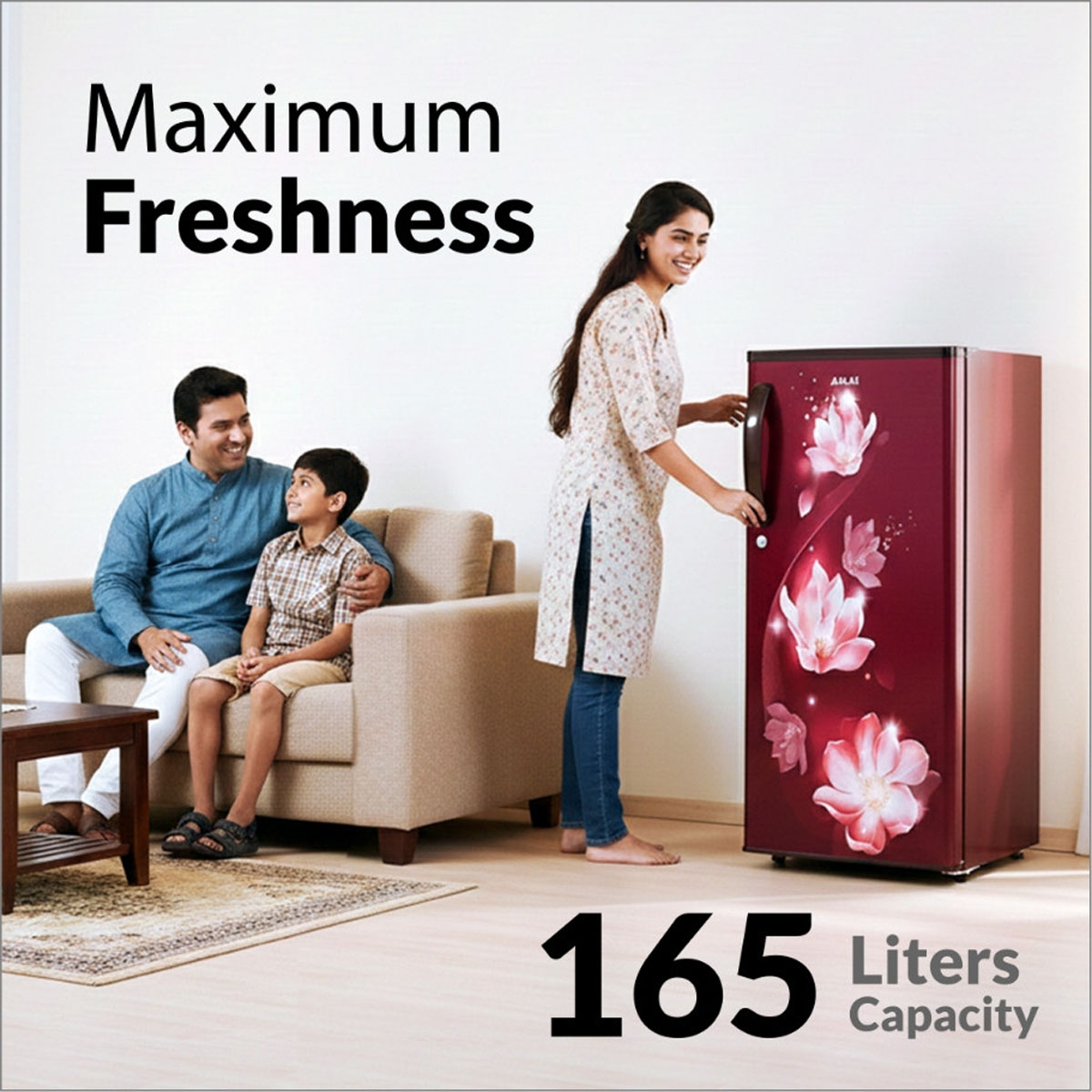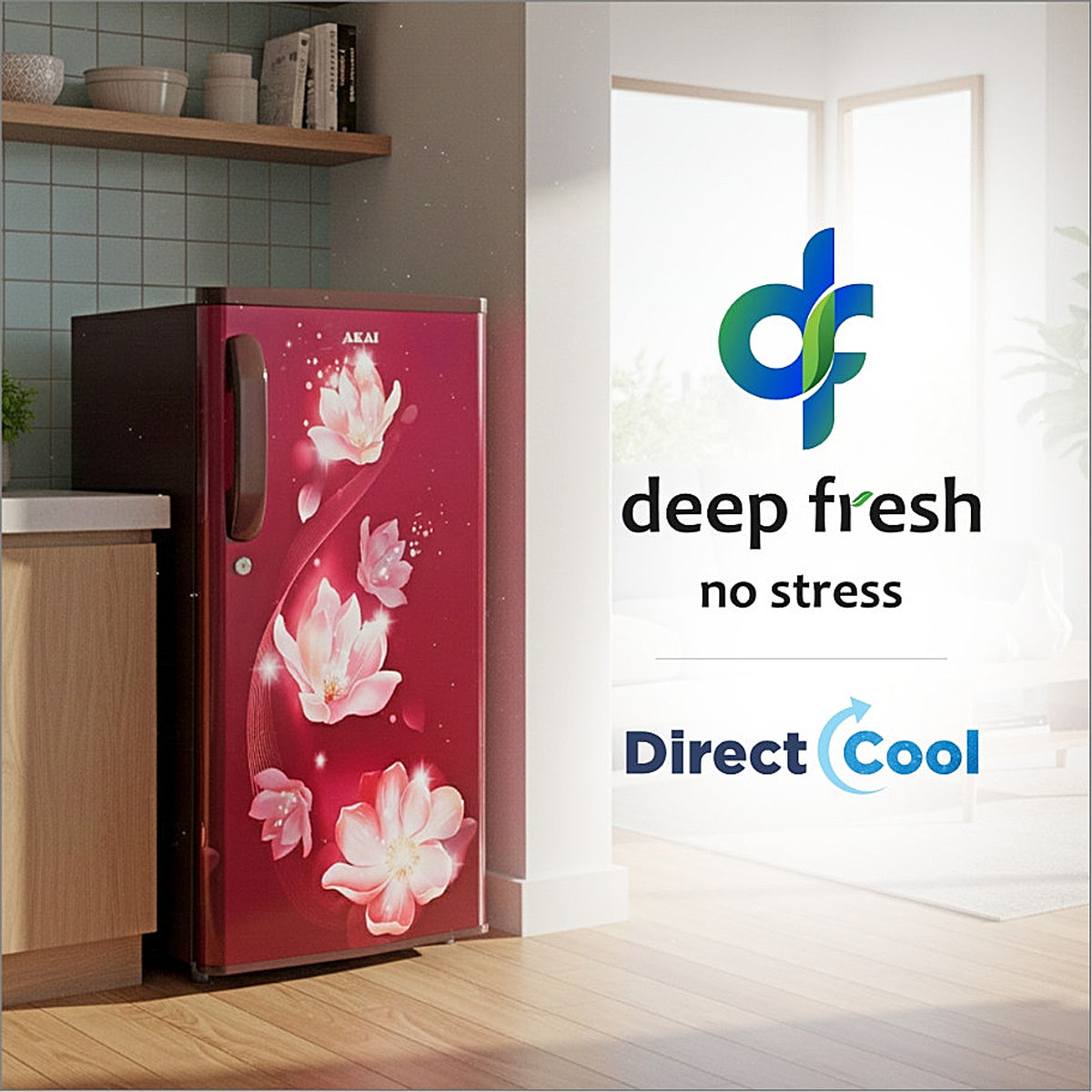 AKAI 165L, 2 Star Direct Cool Single Door Refrigerator, Manual+Push Defrost, Soft Crisper, Stabilizer Free Operation, Hestia Wine, AKDE1802-CPFHW