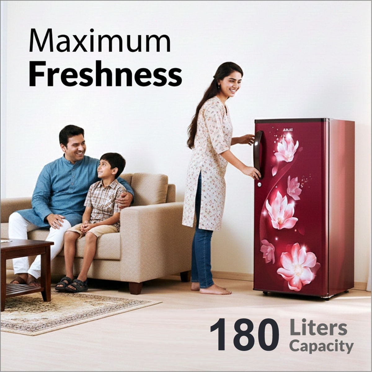 AKAI 180L, 2 Star Direct Cool Single Door Refrigerator, Manual+Push Defrost, Soft Crisper, Stabilizer Free Operation, Hestia Wine, AKDE2022-CPFHW