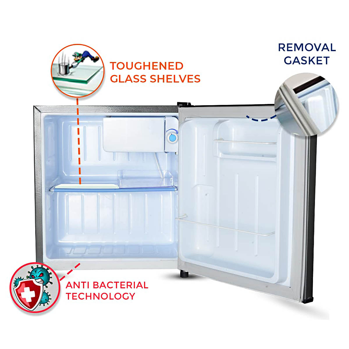 Akai 48 Litre Direct Cool Single Door Minibar Refrigerator with 1 Star Rating and Silent Operation, Hairline-Silver, AKDE551-NHLS