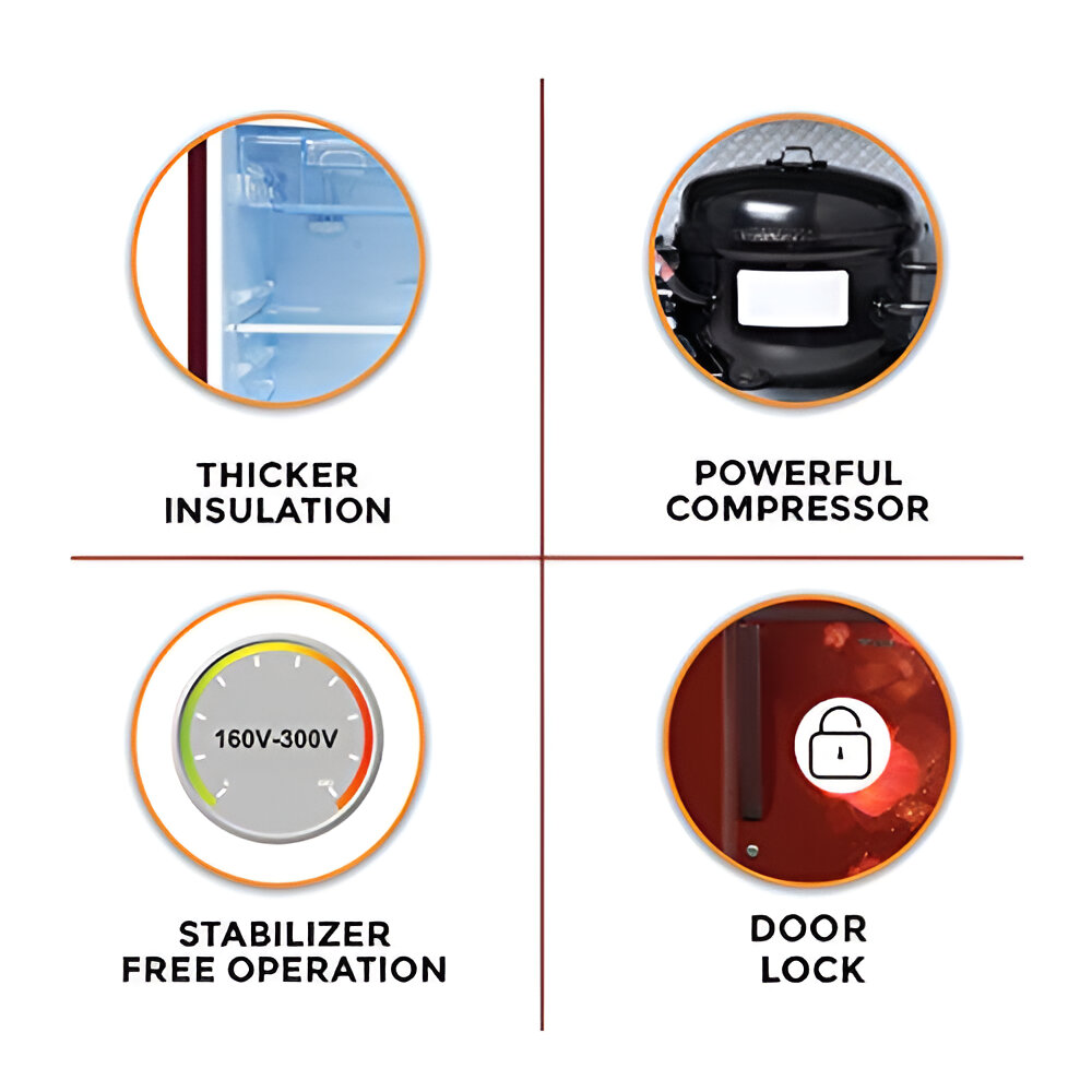 • Akai 92 Litre Direct Cool Single Door Compact Refrigerator with 1 Star Rating and Silent Operation, Hairline-Silver, AKDE1051-NHLS