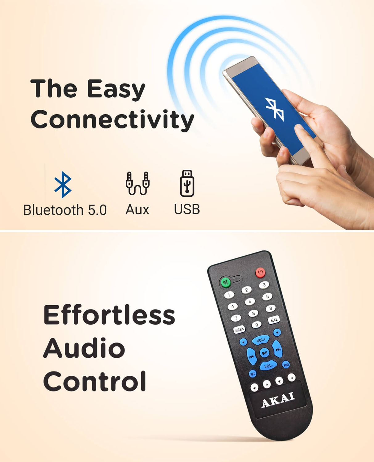 AKAI Party Speaker, 100W RMS With Remote, 8'' x 2 Woofer, Karaoke, Wired Mic Socket, RGB LED Lights, Digital Display, TWS Function, PM-1000 Ultra