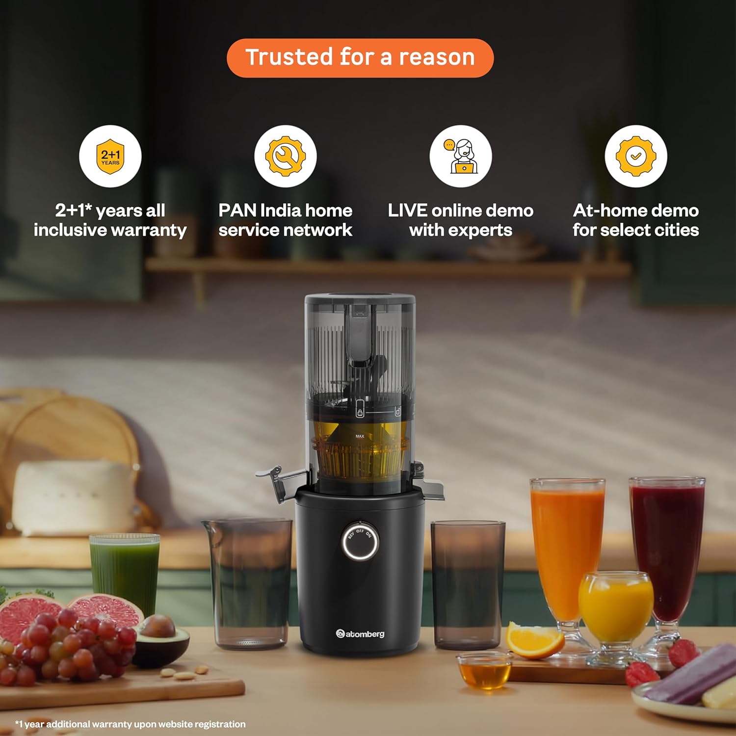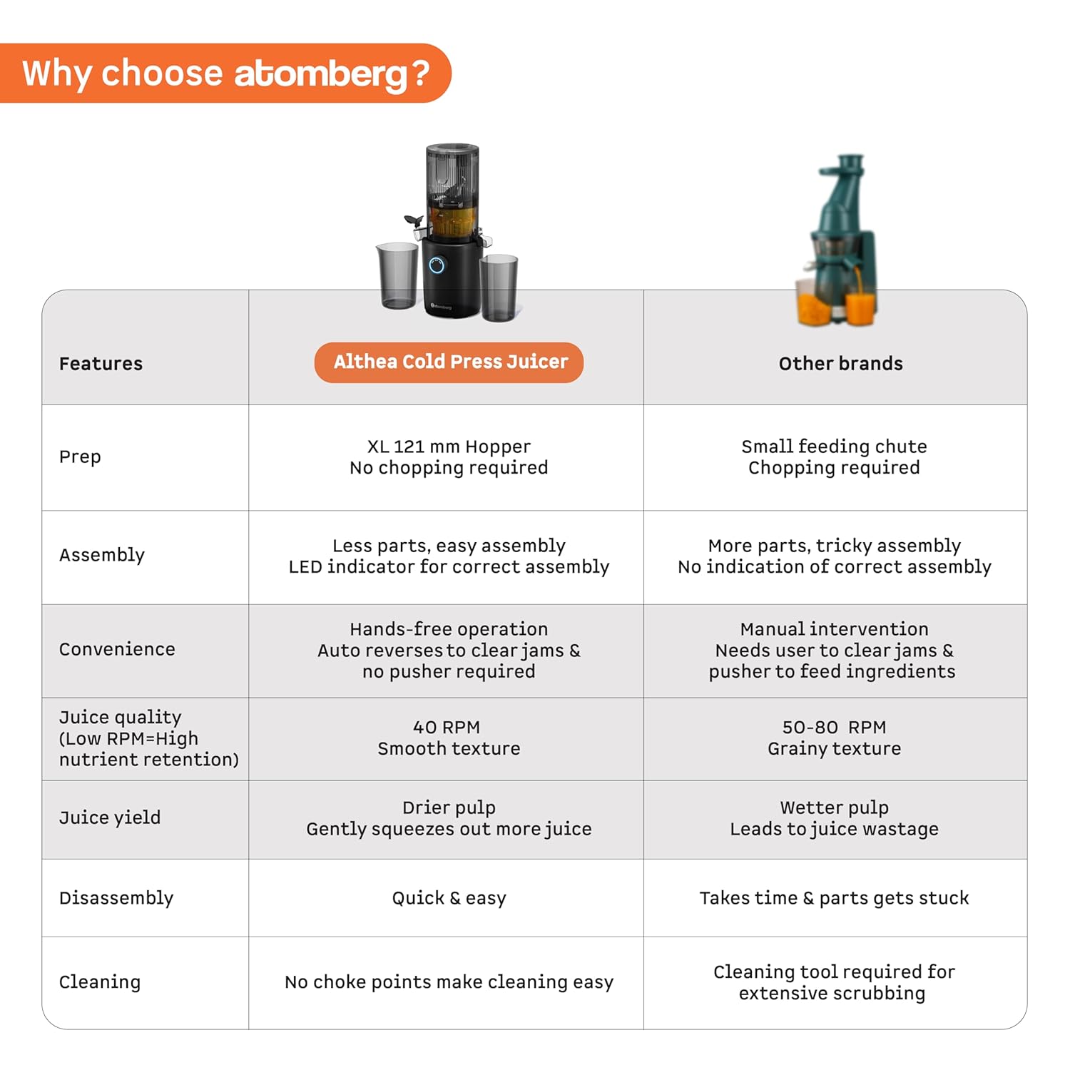 Atomberg Cold Press Juicer with High Nutrition, Intelligent Auto Reverse, Advanced Safety Features, Ideal for Fruit, Veggie and Nut Milks, Althea