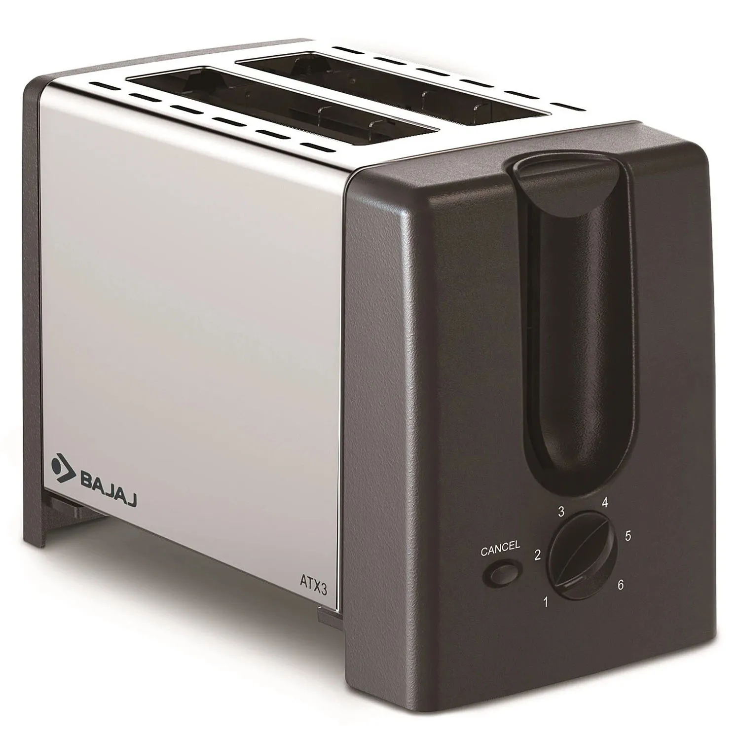 Bajaj ATX-3, 2 Slice Automatic Pop-Up Toasted with Dust Cover and Slide Out Crumb Tray, Silver/Black