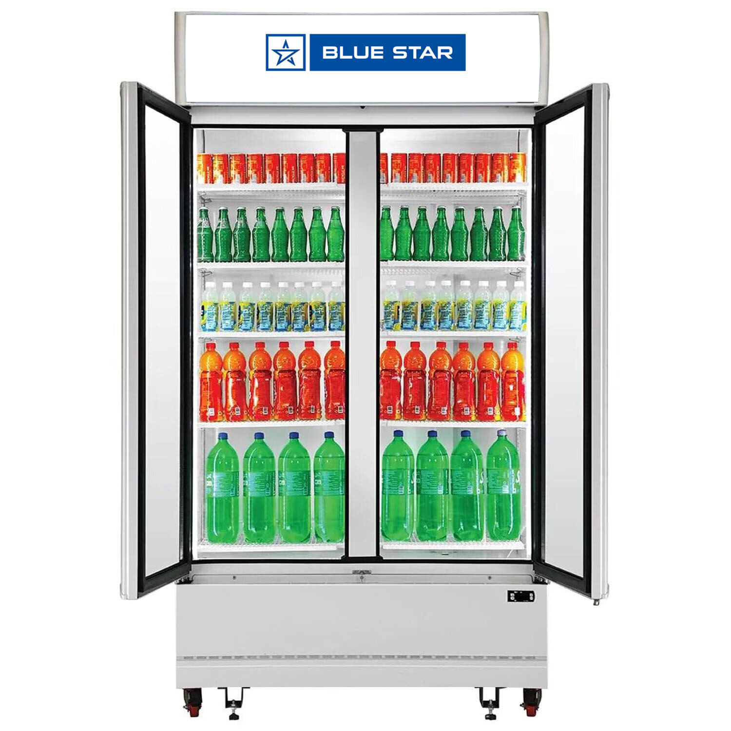 BLUE STAR 568 Liter Self-Closing Double Glass Door Commercial Visi Cooler, Automatic Defrost System and Inverter Compressor, VC600CD-B