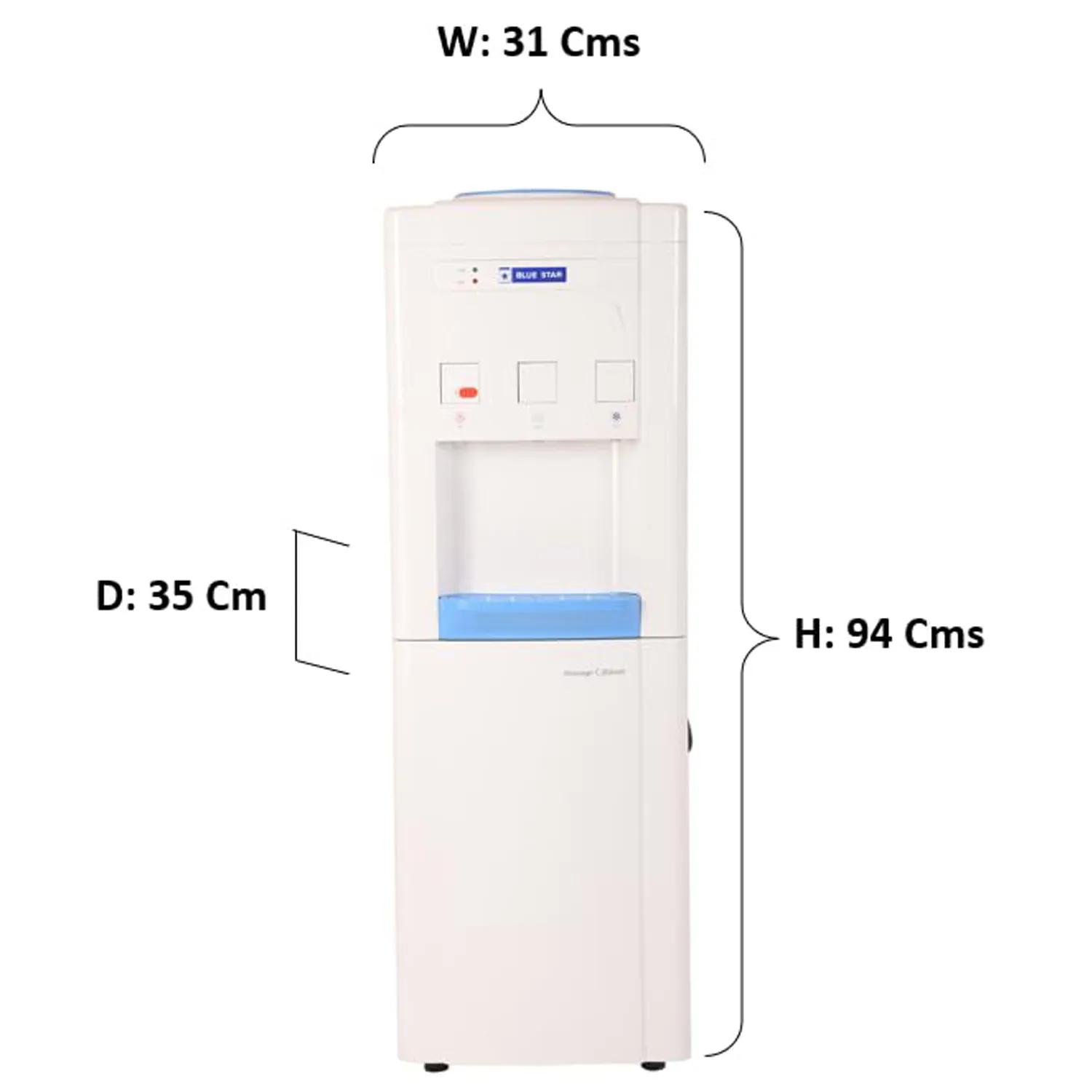 BlueStar Water Dispenser with Refrigerator with Normal, Cold and Hot Tap, White, BWD3FMRGA
