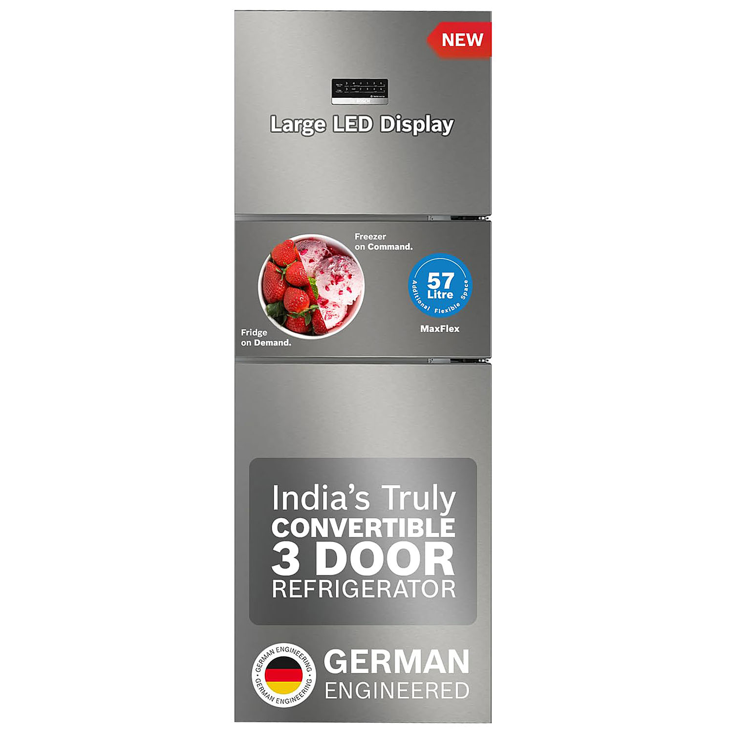Bosch MaxFlex Convert 332L 3 Star Frost Free Triple Door Inverter Refrigerator, 8-in-1 Convertible, UV Protected Body Shield, VitaFresh Technology, Adaptive UI, Shiney Silver, CMC33S03NI