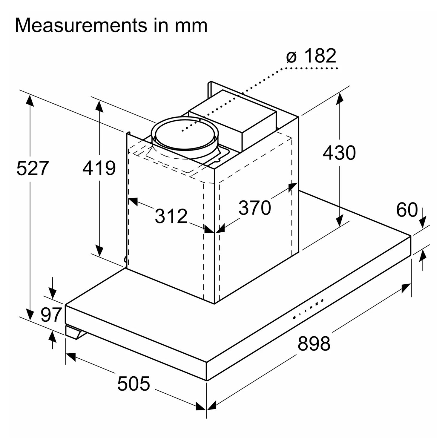 Bosch (Series 4) 90 cm Self Clean Wall-Mounted Kitchen Cooker Hood (DWBA98G60I)