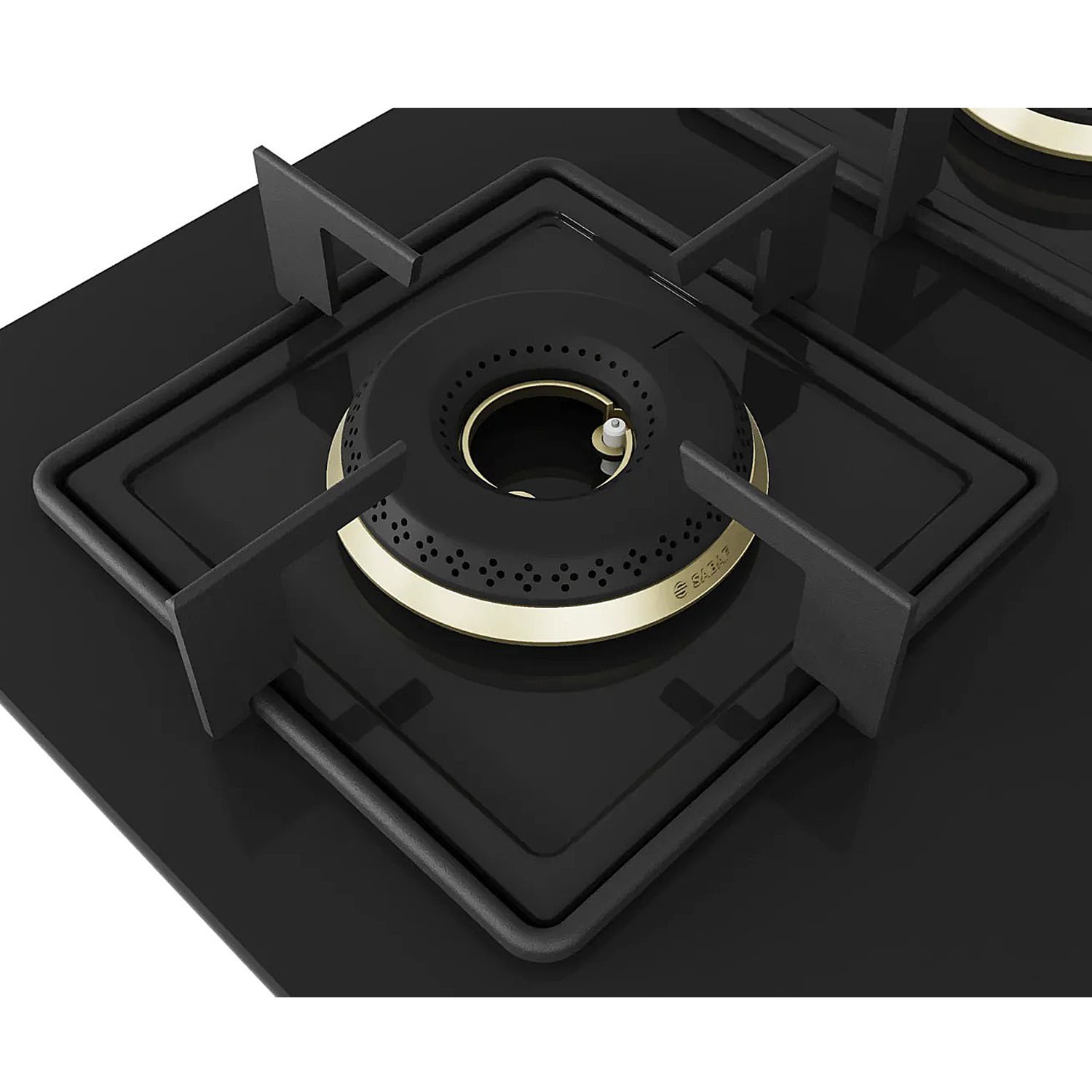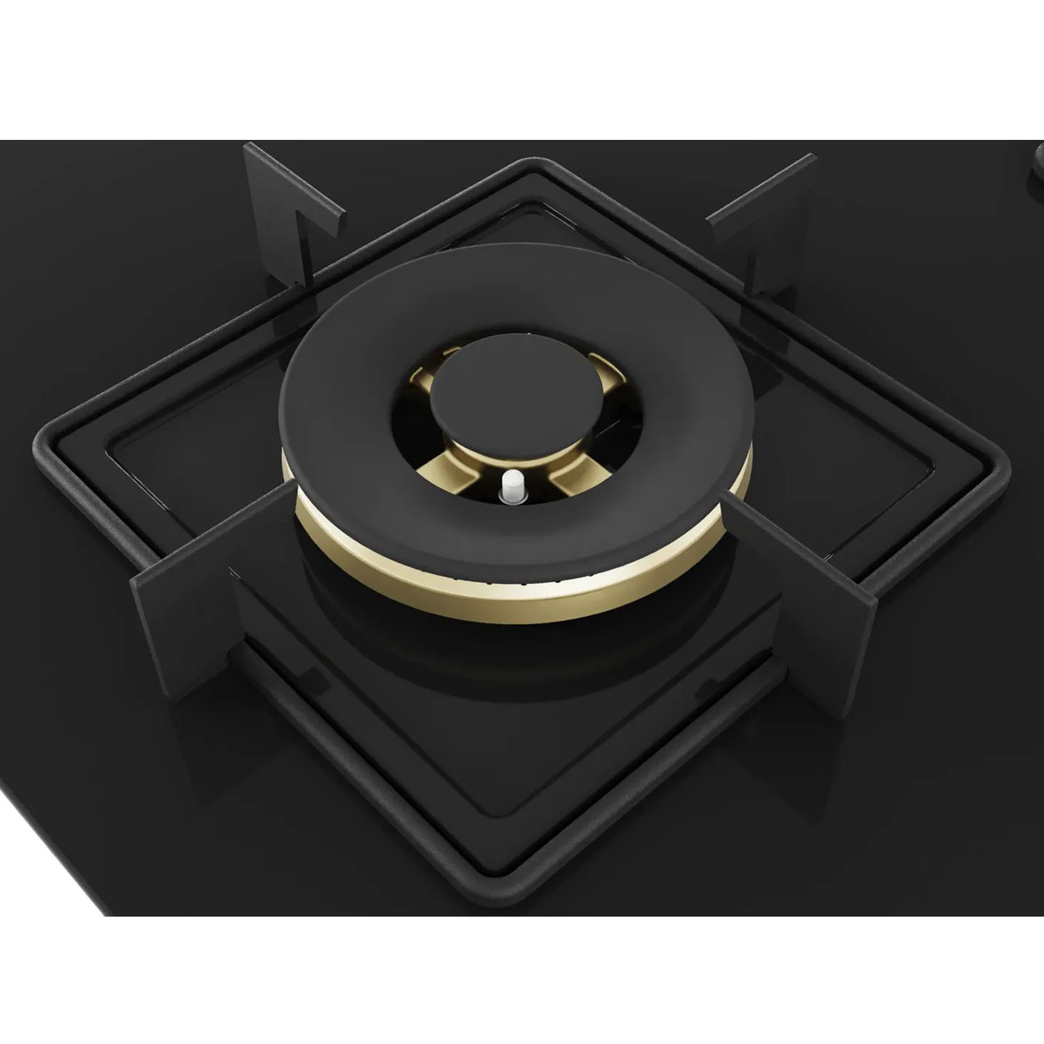 Bosch 4 Burner Built-In Hob with Tempered glass, Auto Ignition, True Brass 2D Ring Burners with Heat Shields Cast Iron pan supports, Black, PNH6B6F20I