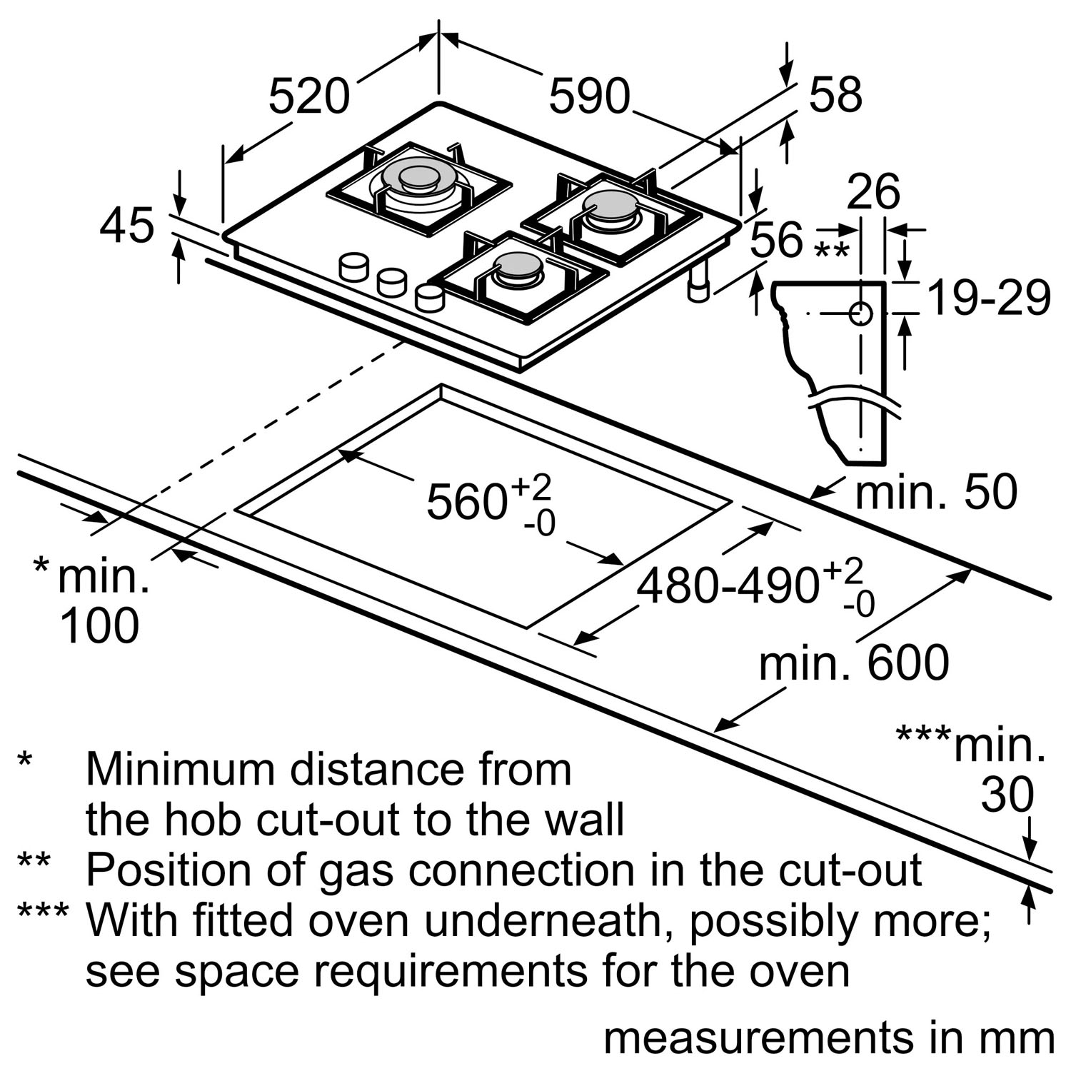 • Bosch Series 4 Built in Gas Hob Tempered Glass 3 Burner Auto Ignition 60 cm True Brass 2D Ring Burners with Glossy Black Heat Shields & Enameld pan supports, Black, PNC6B6F10I