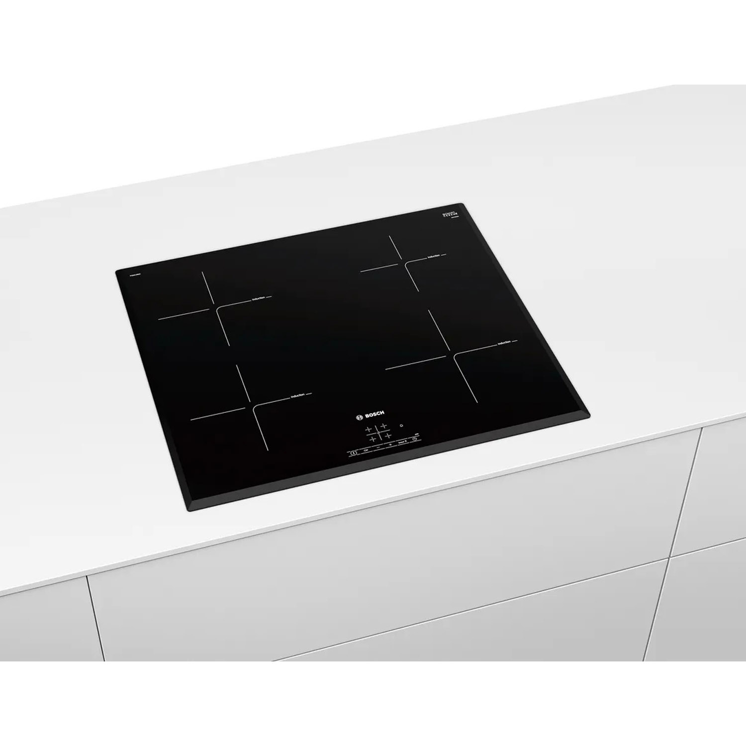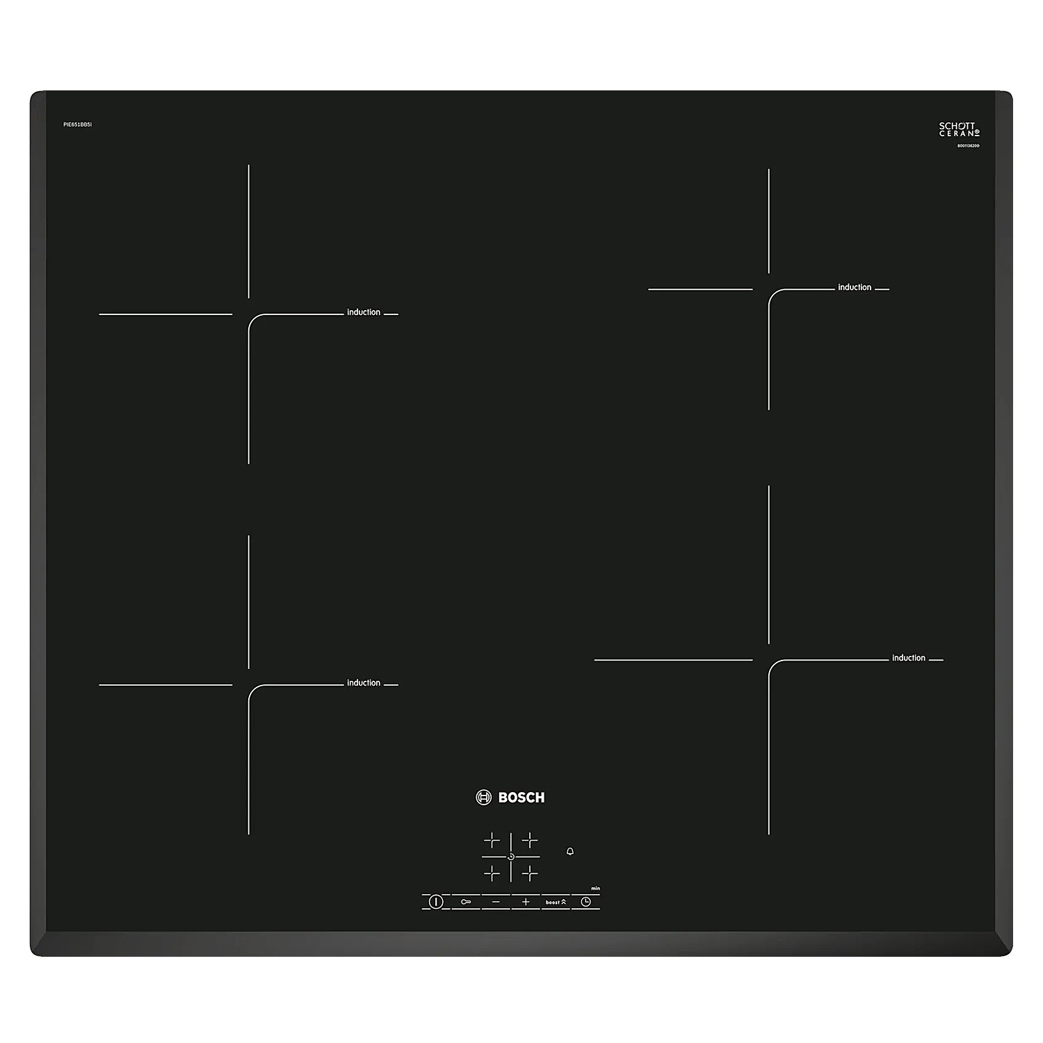 • Bosch Series 4 Induction hob 60 cm surface mount, 1800W Glass Ceramic Induction Hob With 4 Cooking Zone, Black, PIE651BB5I