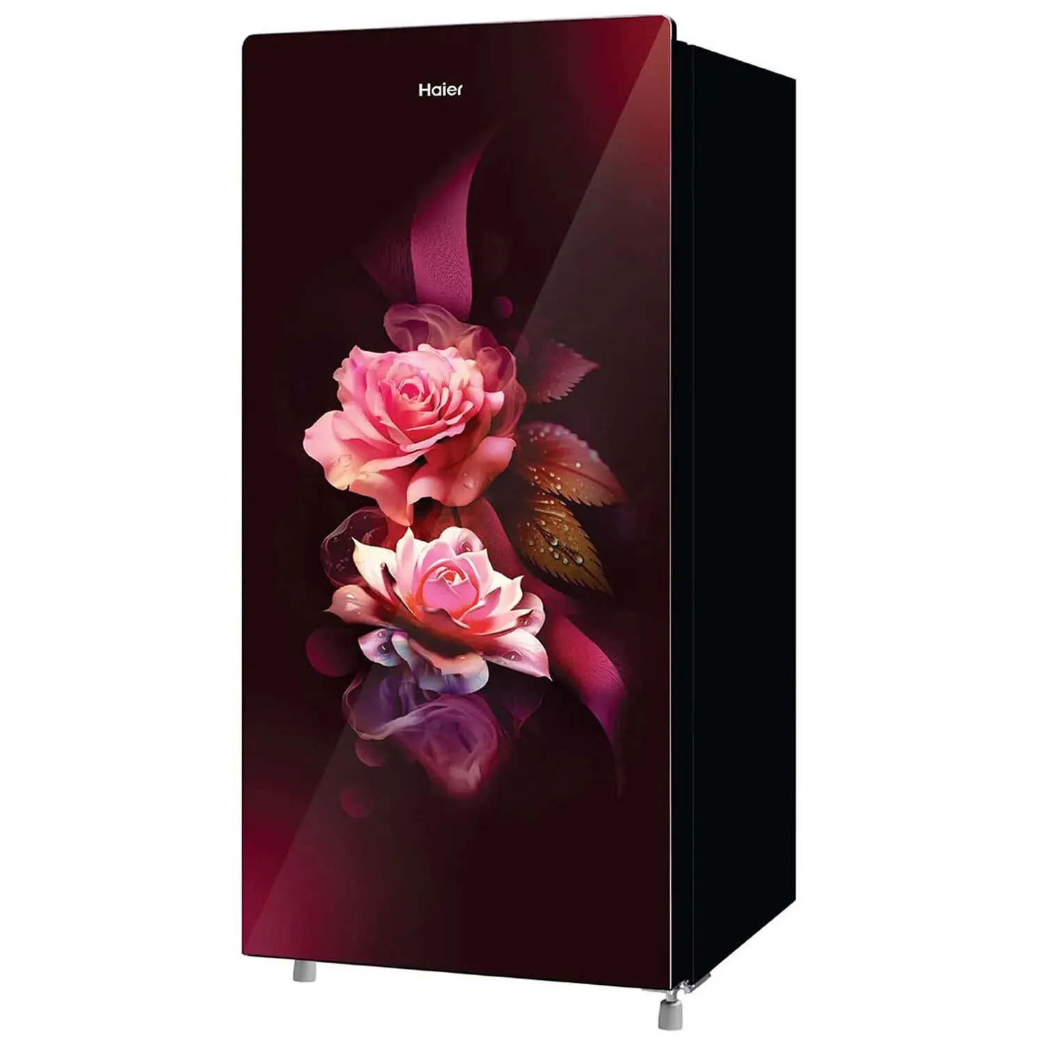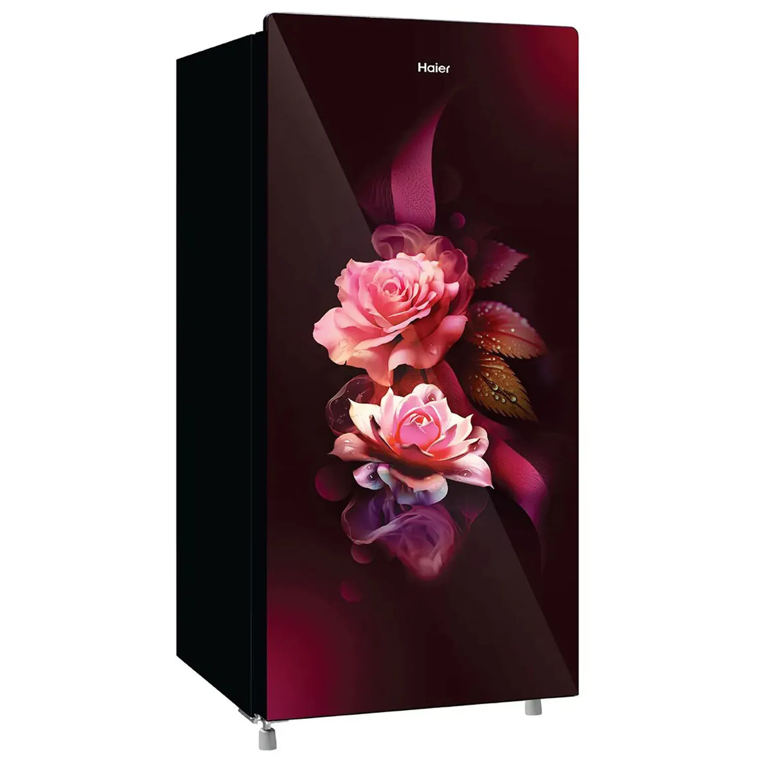 • Haier HRD-2062CRDG, 185 Litre 2 Star Single Door Refrigerator with Glass Door and Stabilizer Free Operation, Red Dime