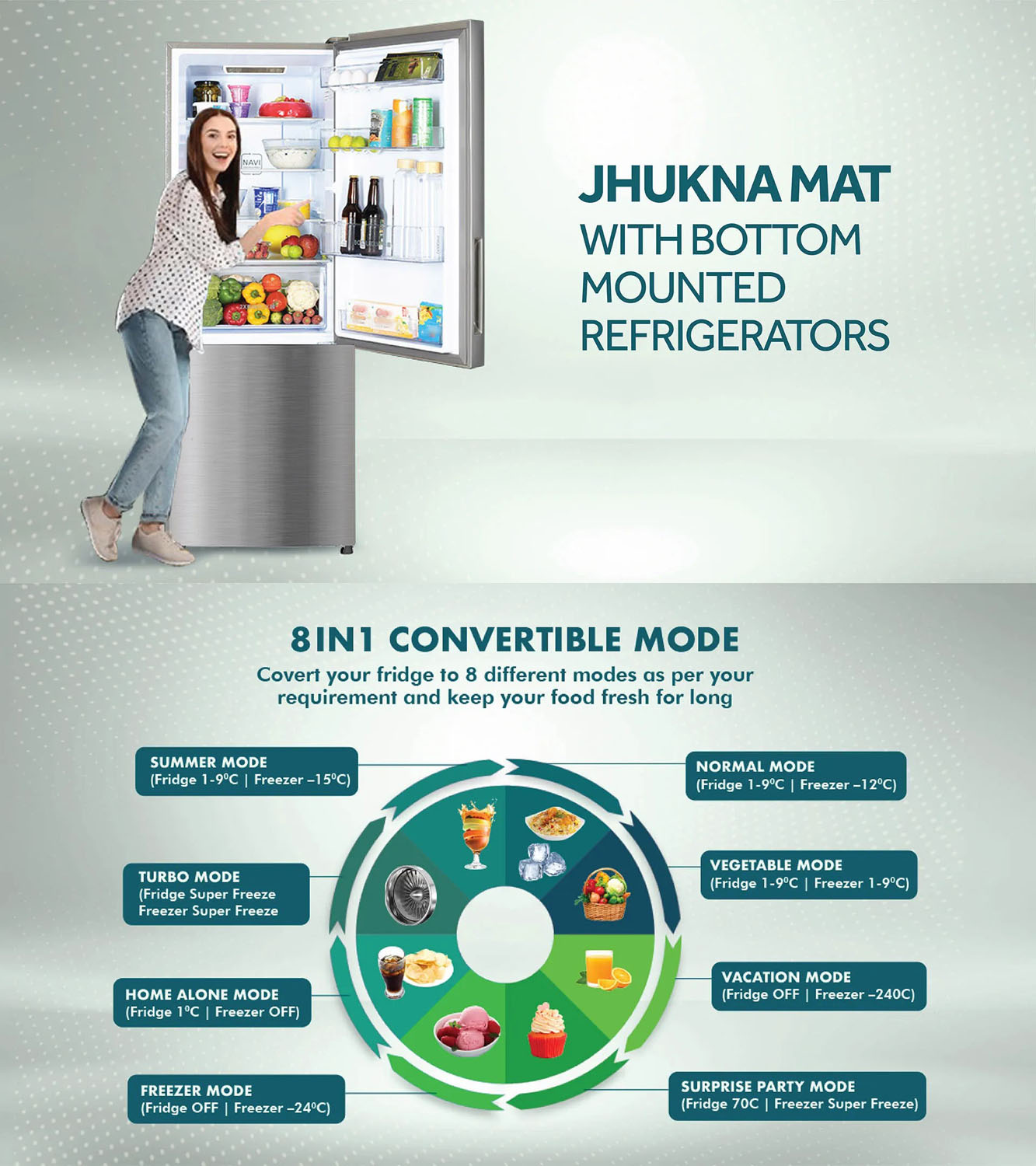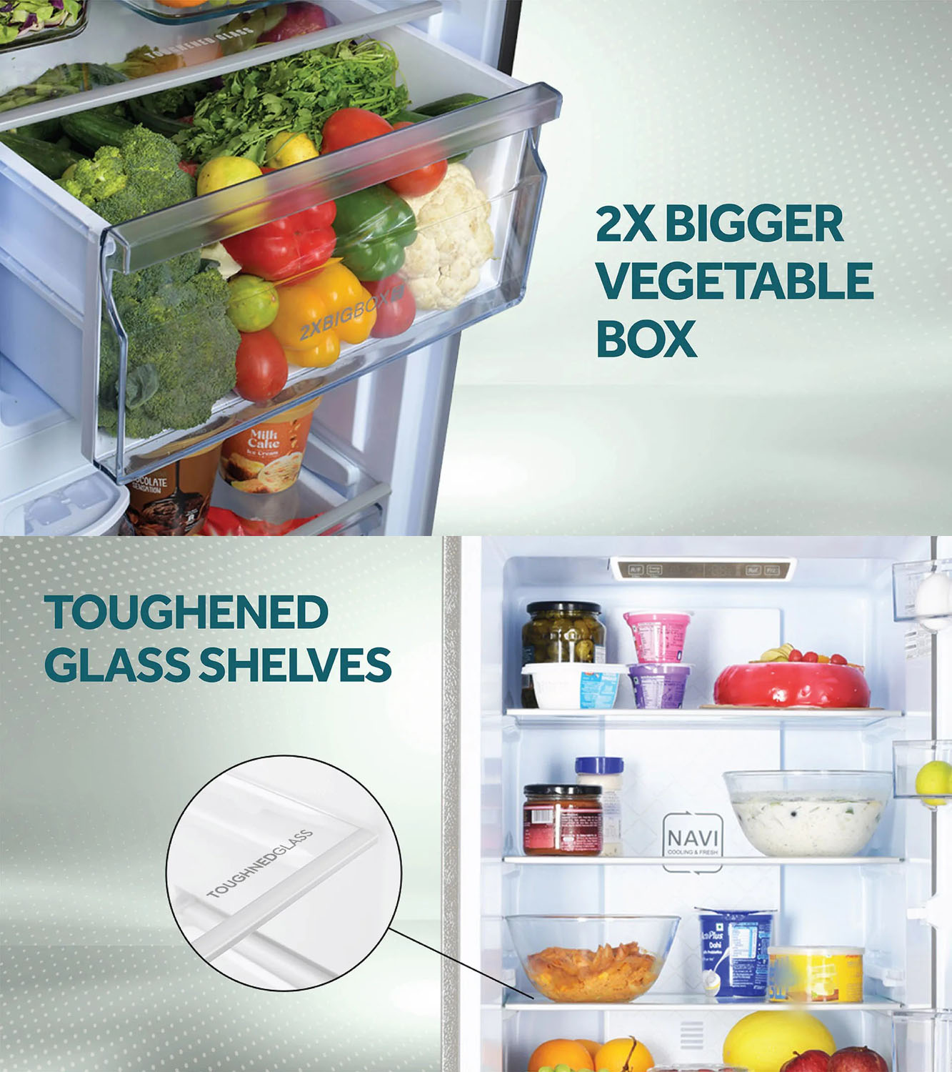Haier 237 L, 2 Star, 8 In 1 Convertible, Frost Free Double Door Bottom Mount Refrigerator, Twin Energy Saving Mode, Moon Silver, HRB-2872IBMS-P