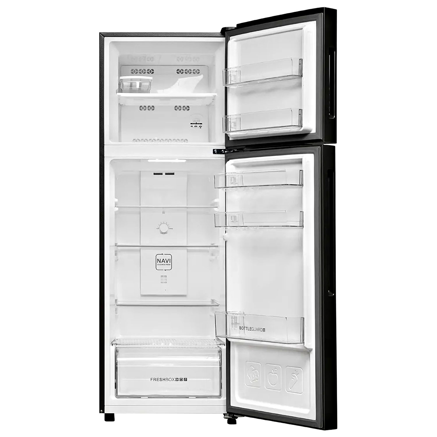 Haier 240 Liter 2 Star Top Mount Double Door Refrigerator with Cool Pad, 200% Faster Ice Making in 49 Minute, Black Glass, HRF-2902EKG