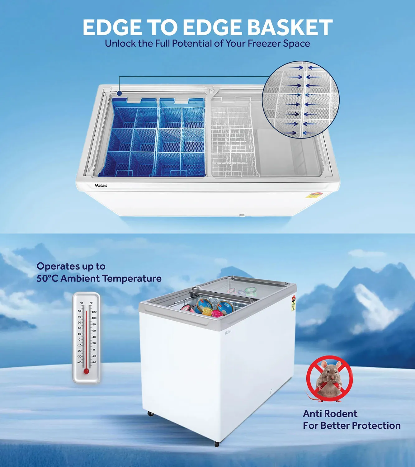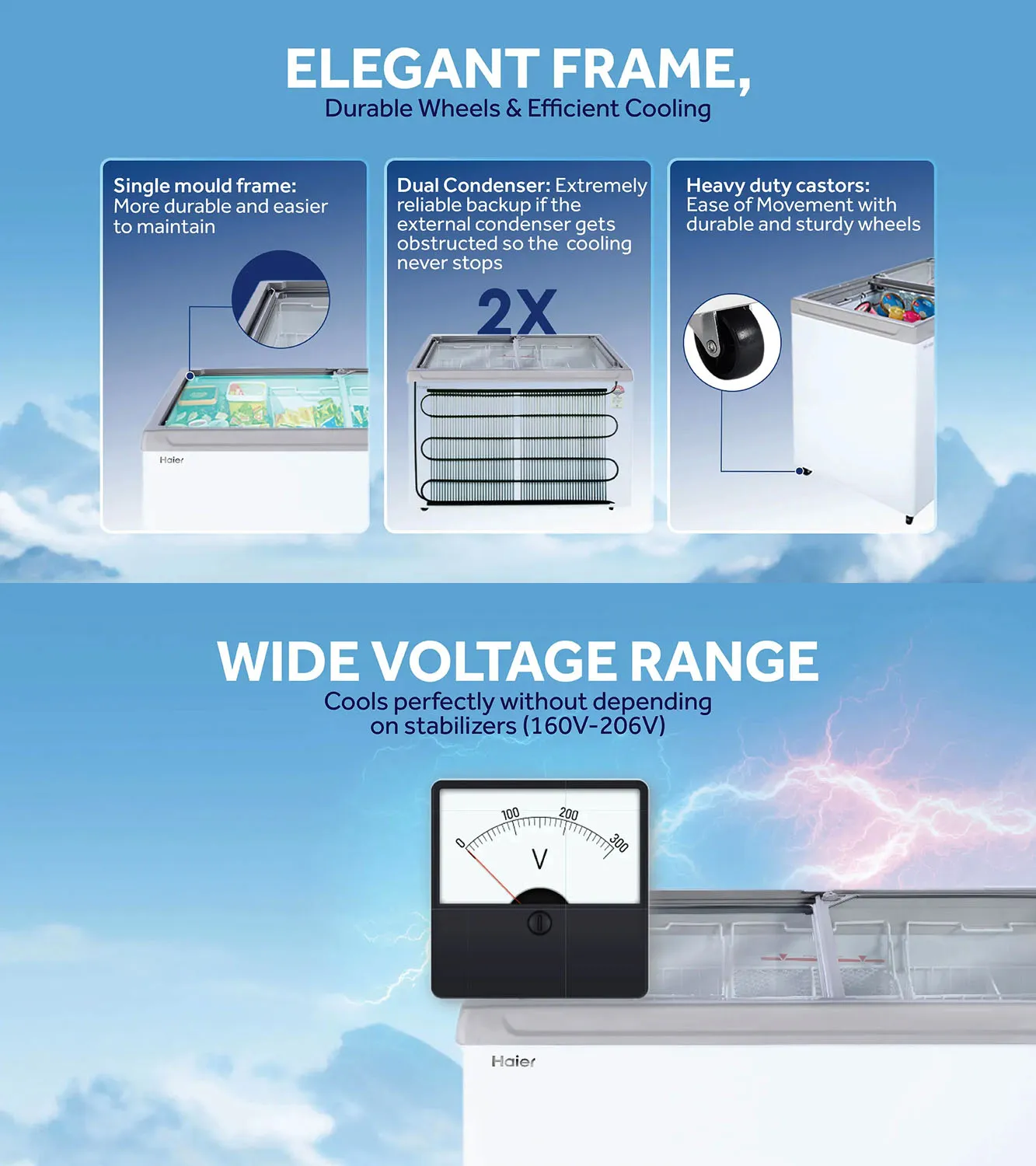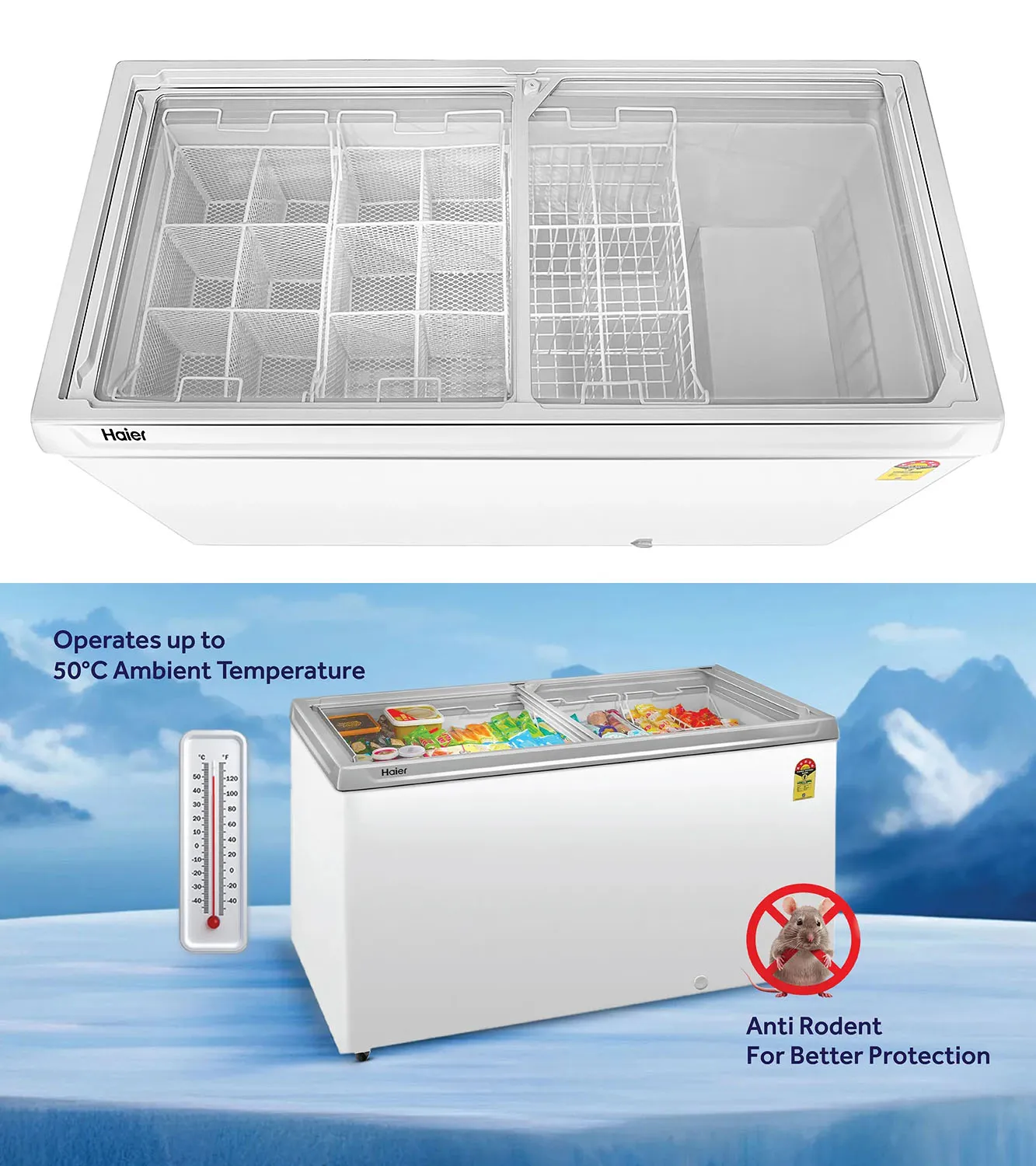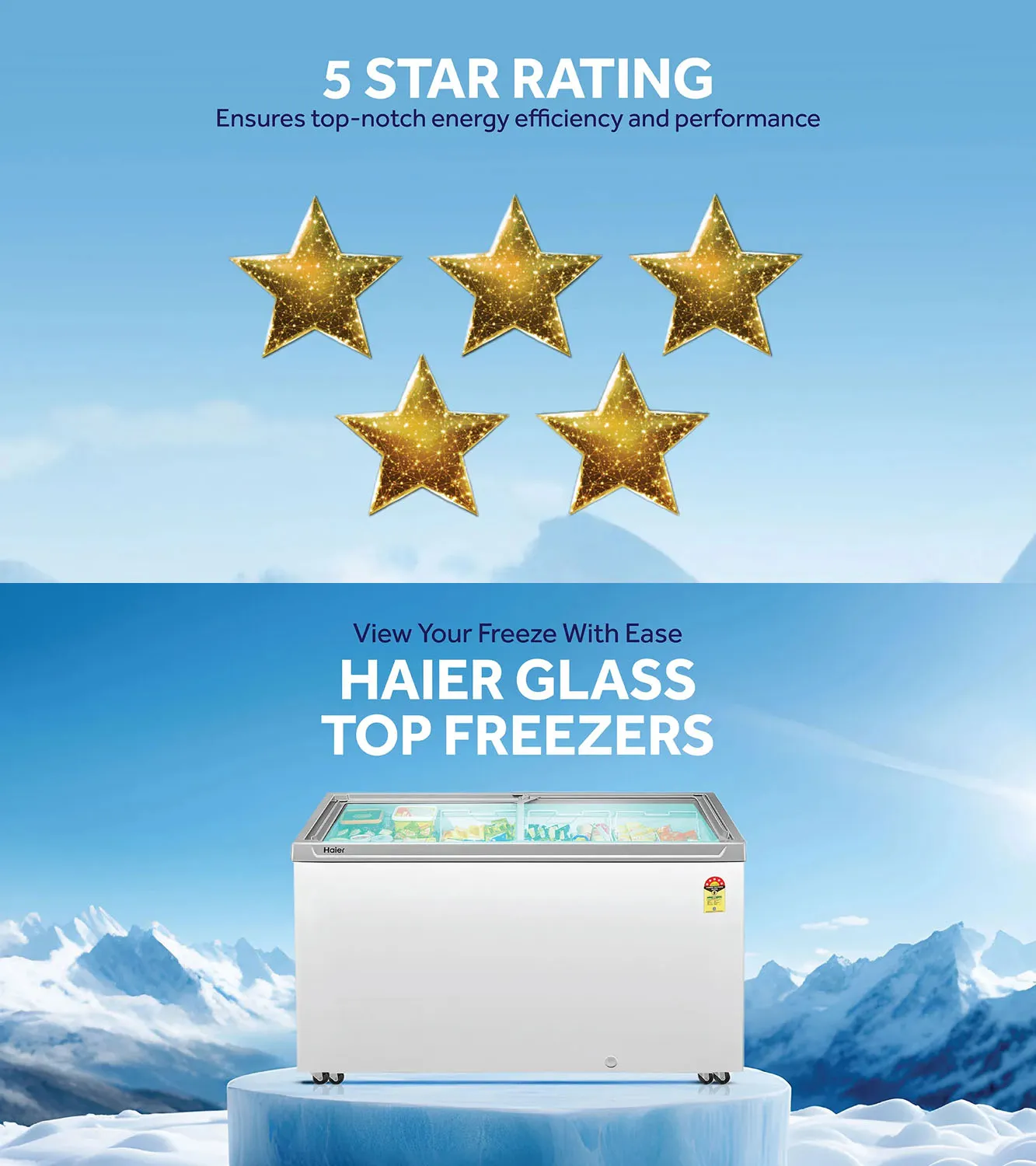 Haier HFC-300GM5 Double Door Glass Top Deep FreezerHaier HFC-300GM5 Double Door Glass Top Deep Freezer with 5 Star, White with 5 Star, White