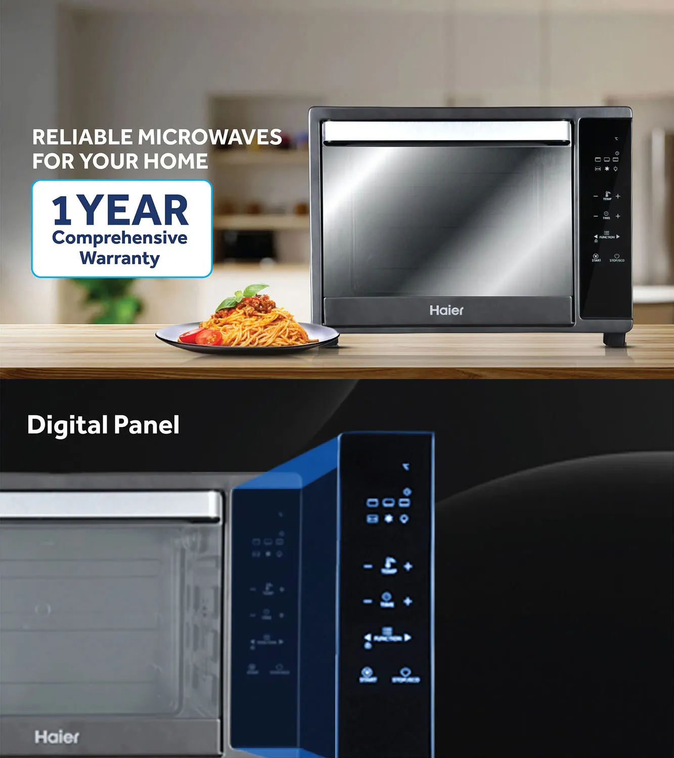 Haier HIL3501GR, 35 Litre Oven Toaster Grill with Digital Control, Motorized Rotisserie and Kebab Making Accesories, Grey