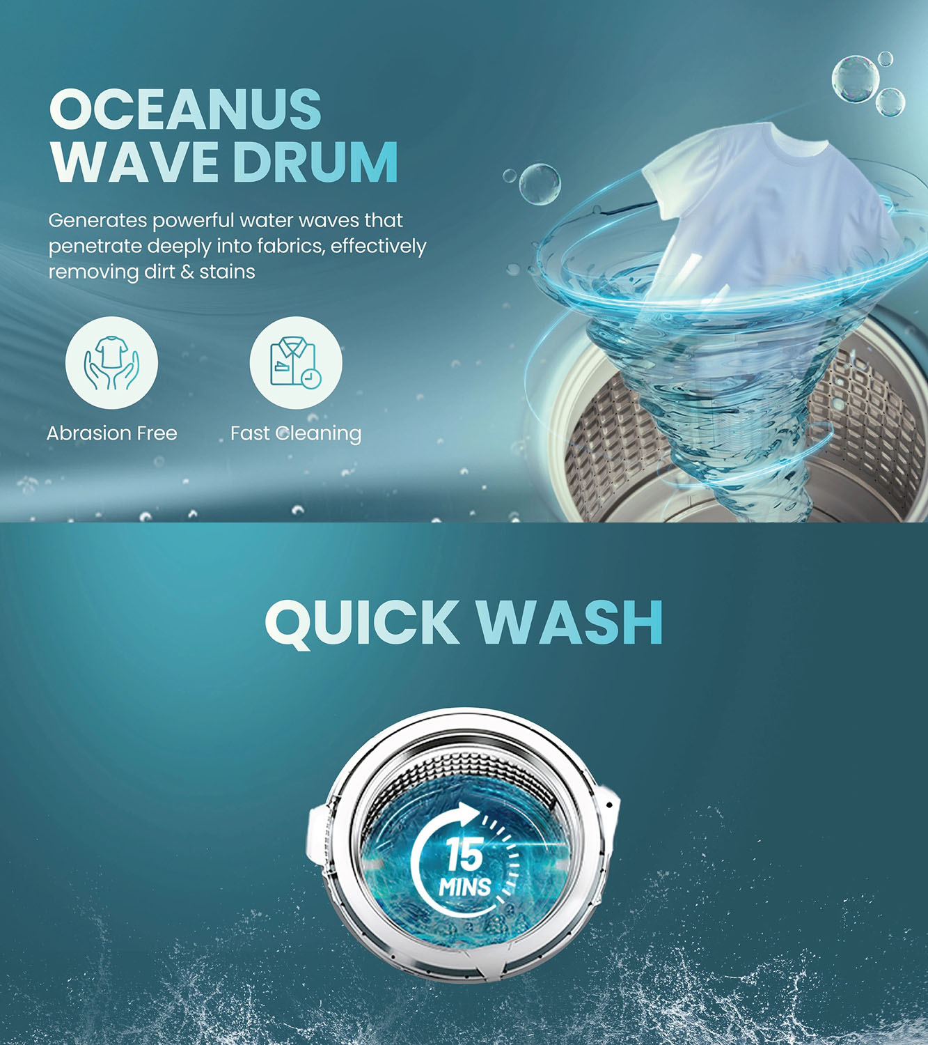 Anti Scaling Technology, Near Zero Pressure, Oceanus Wave Drum, Softfall Technology