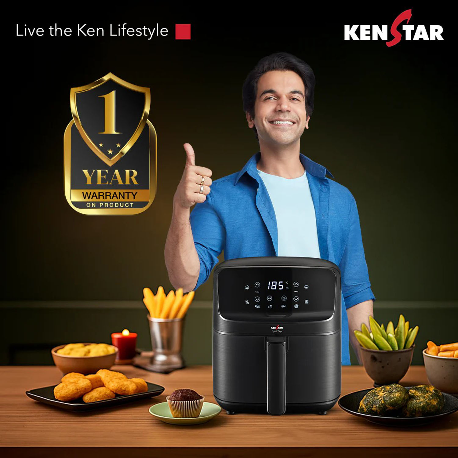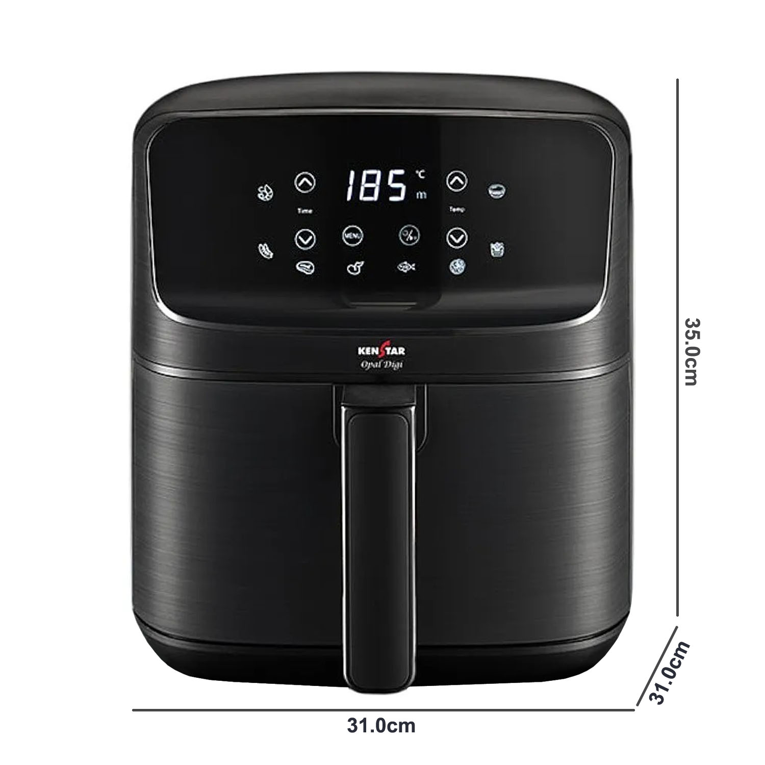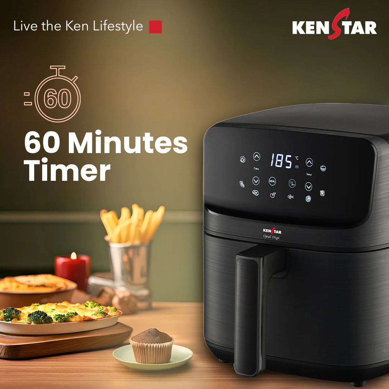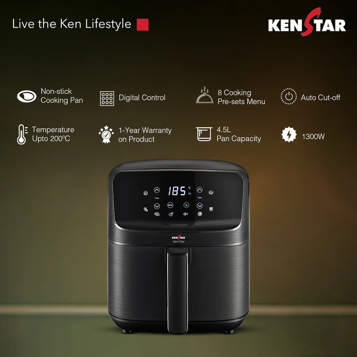 Kenstar 4.5 Liter Digital Air Fryer with Non-Stick Pan, Adjustable Temperature Up-To 200°C, 8 Preset Cooking Modes, Black, Opal Digi
