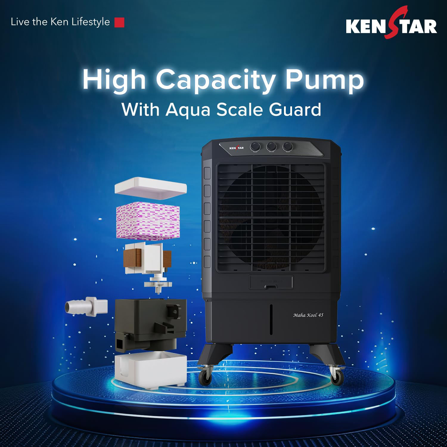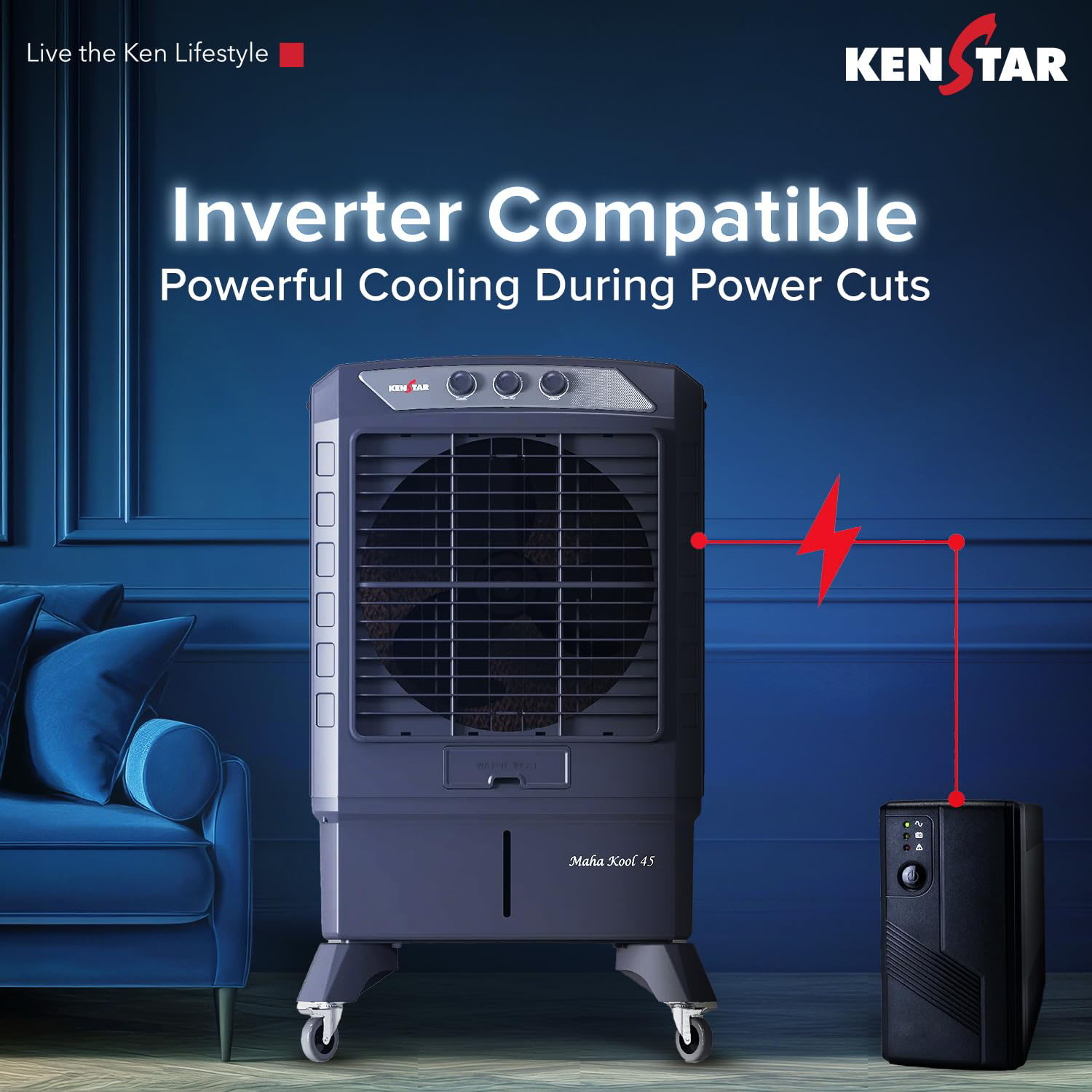 Kenstar 45 Liter Personal Air Cooler with Anti-Bacterial Honeycomb Pads, 35Ft Air Throw, High-Speed and Invertor ready, Grey, Maha Kool HC