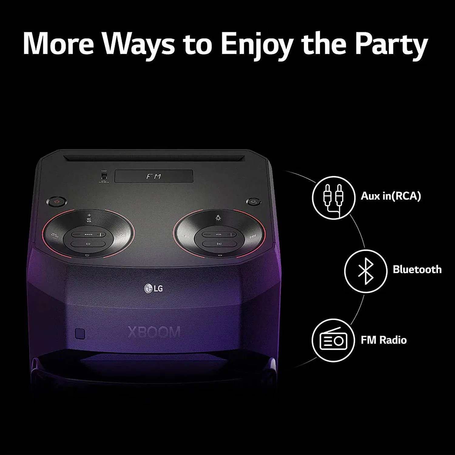 LG XL2, 80 Watt Party Speaker with Super Bass Boost, Karoke Bluetooth Party Speaker and LED Lighting, Black