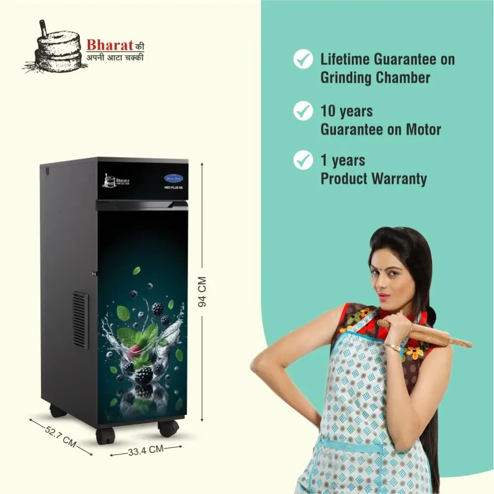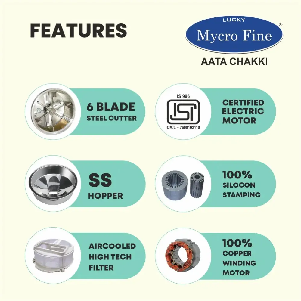 Lucky Mycrofine 6.5KG Aata Chakki with 6 Blade Cutter, Air Cooled Filter and Stainless Steel Food Chamber, Neo Plus SS, Mint Berries