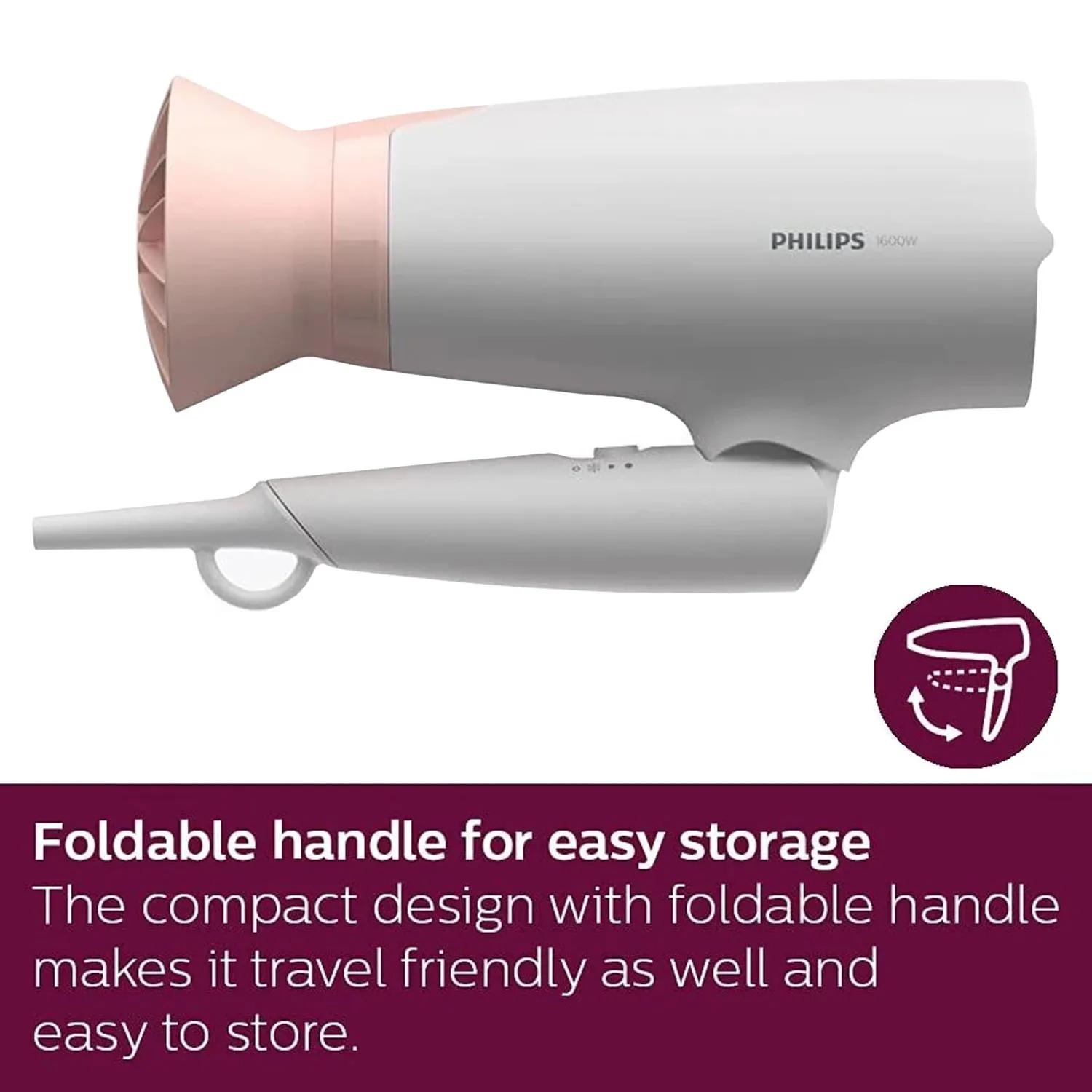 Philips 1600 Watt Hair Dryer with 3 drying Setting, Thermoprotect temperature Setting and foldable handle, White, BHD308/30