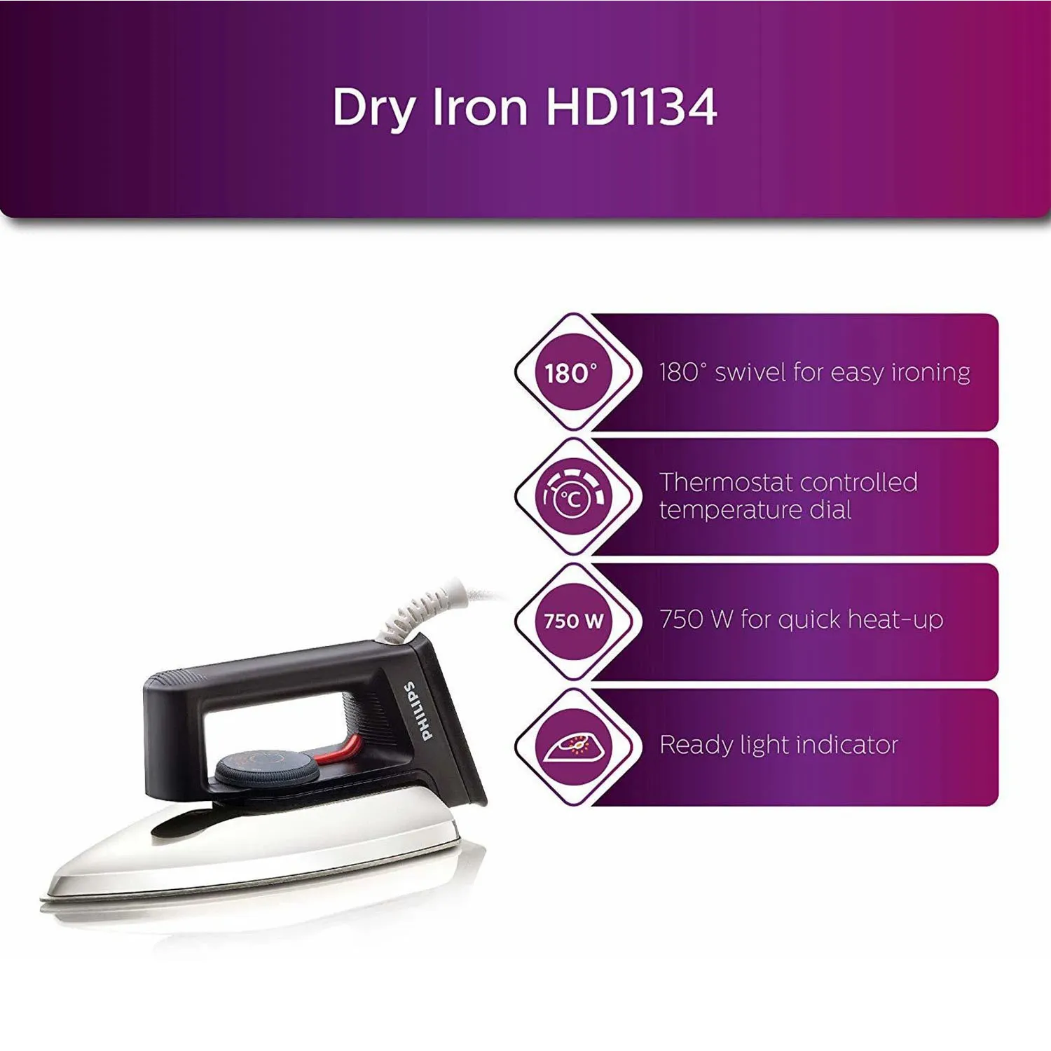 Philips 750 Watts Dry Iron with Temperature Control, Black, HD1134