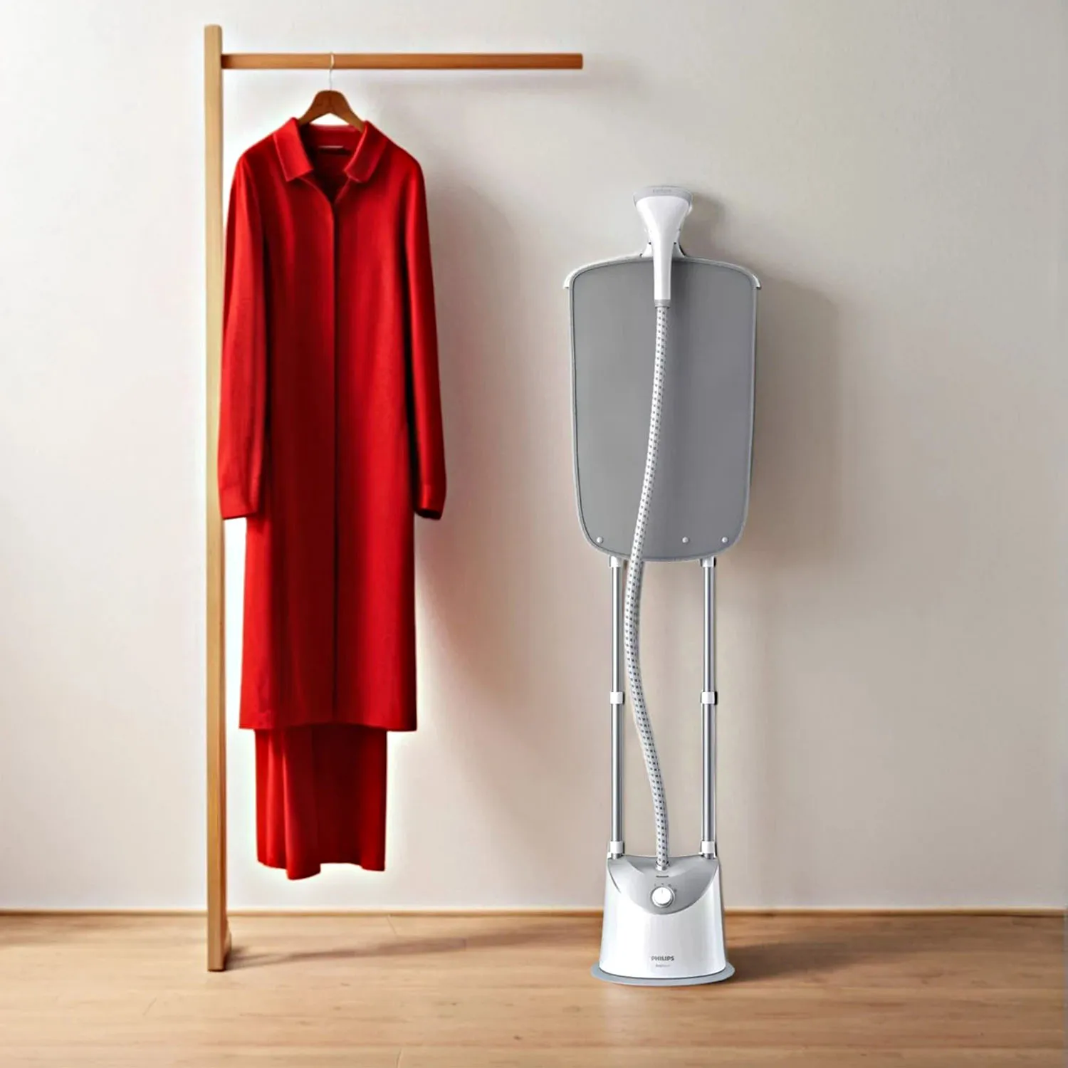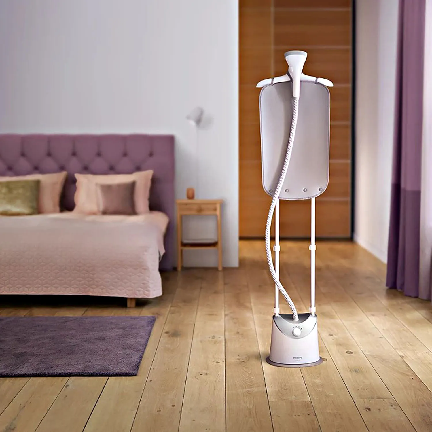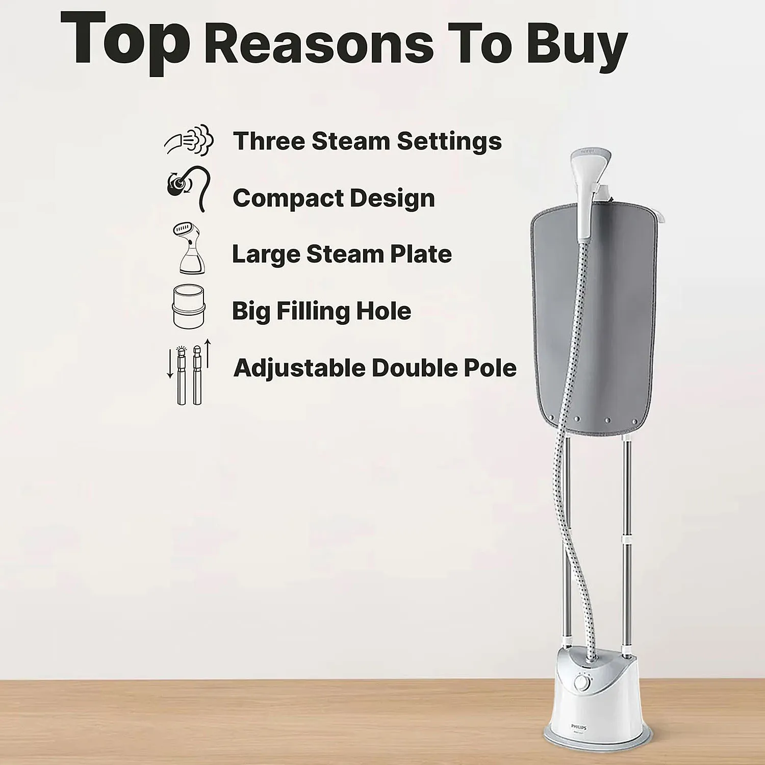 Philips GC487/80, 1800 Watt Stand Steamer with 3 Steam Setting for different kind of fabrics, 1.4 Litre Water Tank and 40% Larger Steam Plate, White