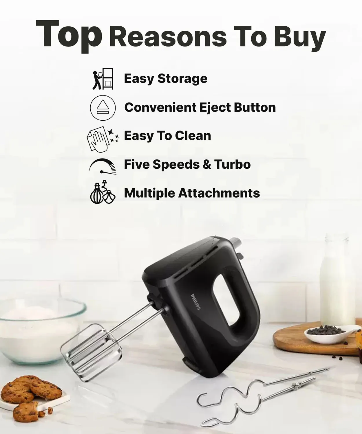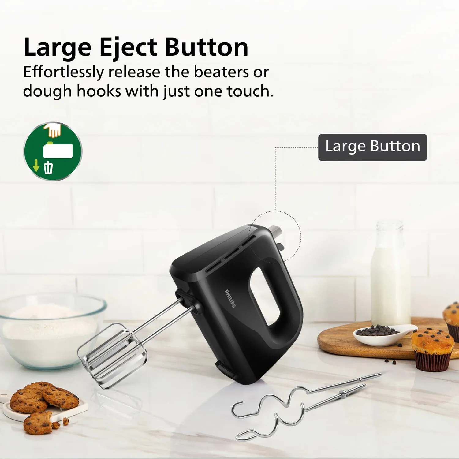Philips HR3705/10, 300 Watt Hand Mixer with 5 Speed Control Setting, Cord Clip for tidy Storage and large Eject button, Black