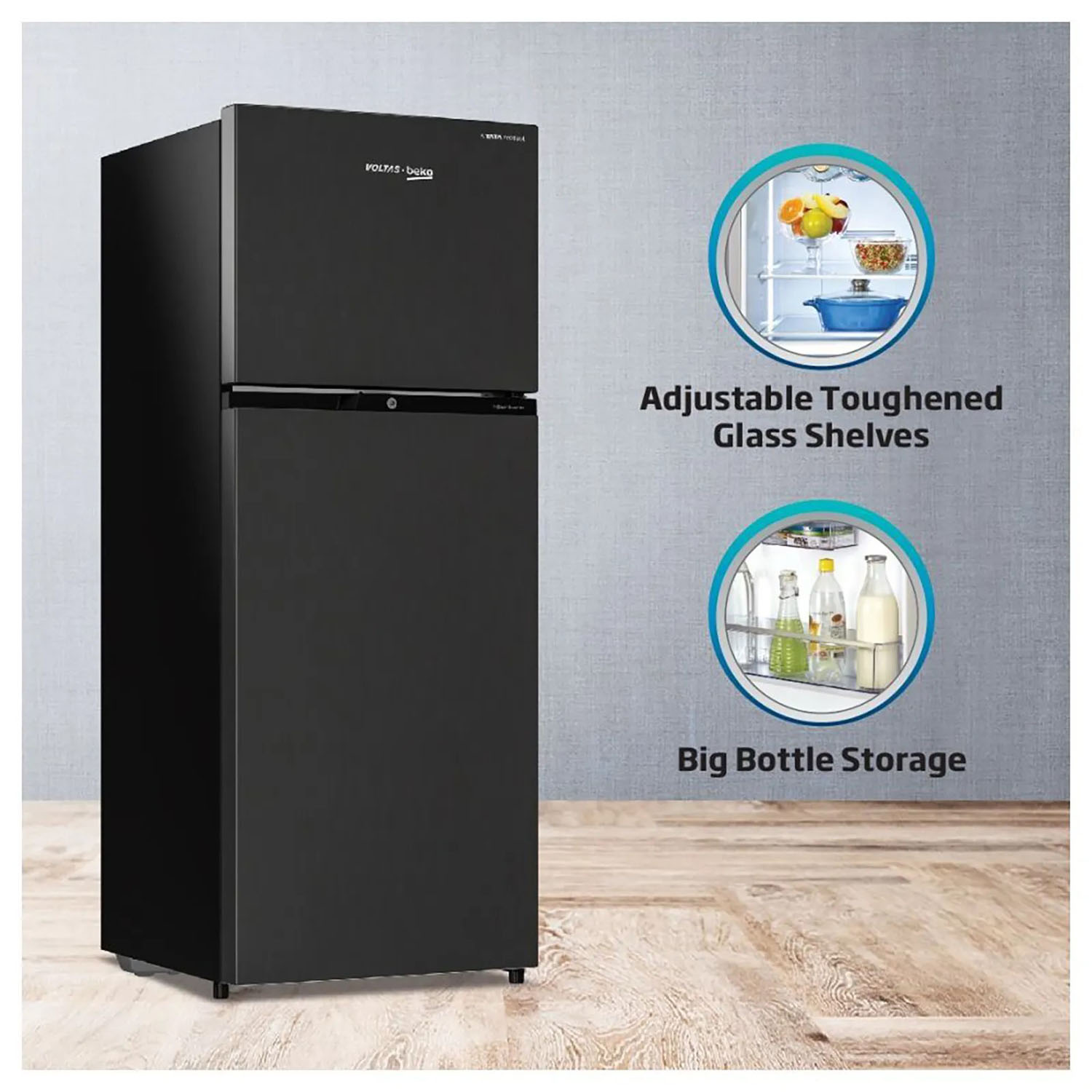 Voltas Beko RFF295D60/XBRXDIXX, 275 Litre 2 Star Double Door Refrigerator with Pro Smart Inverter Compressor, Big Vegetable Box with Crisper and Neo Frost Dual Cooling, Wooden Black