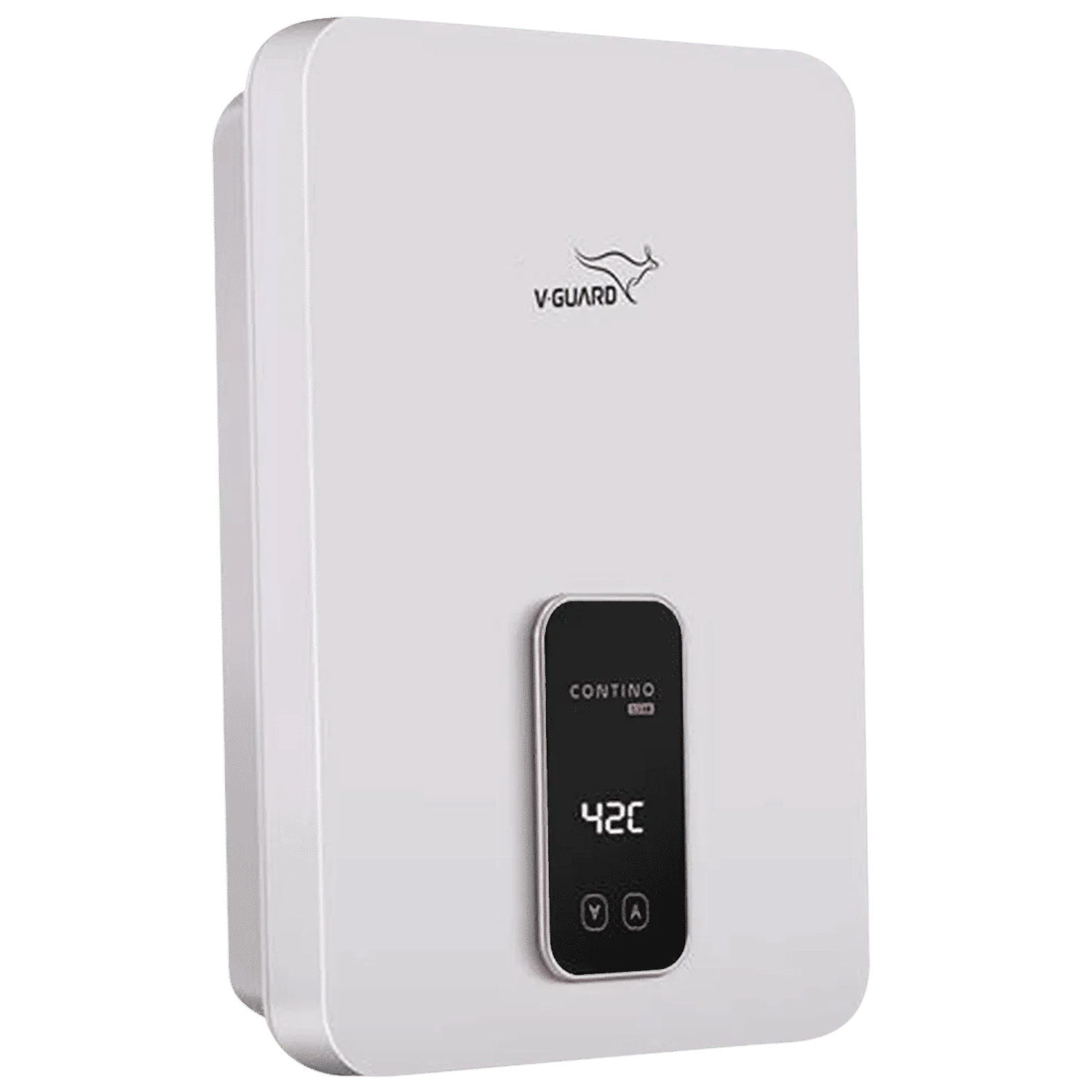 V-GUARD 5.5 kW Tankless Vertical Instant Water Heater, 8 Bar High-pressure compatibility, Digital display, White, Contino