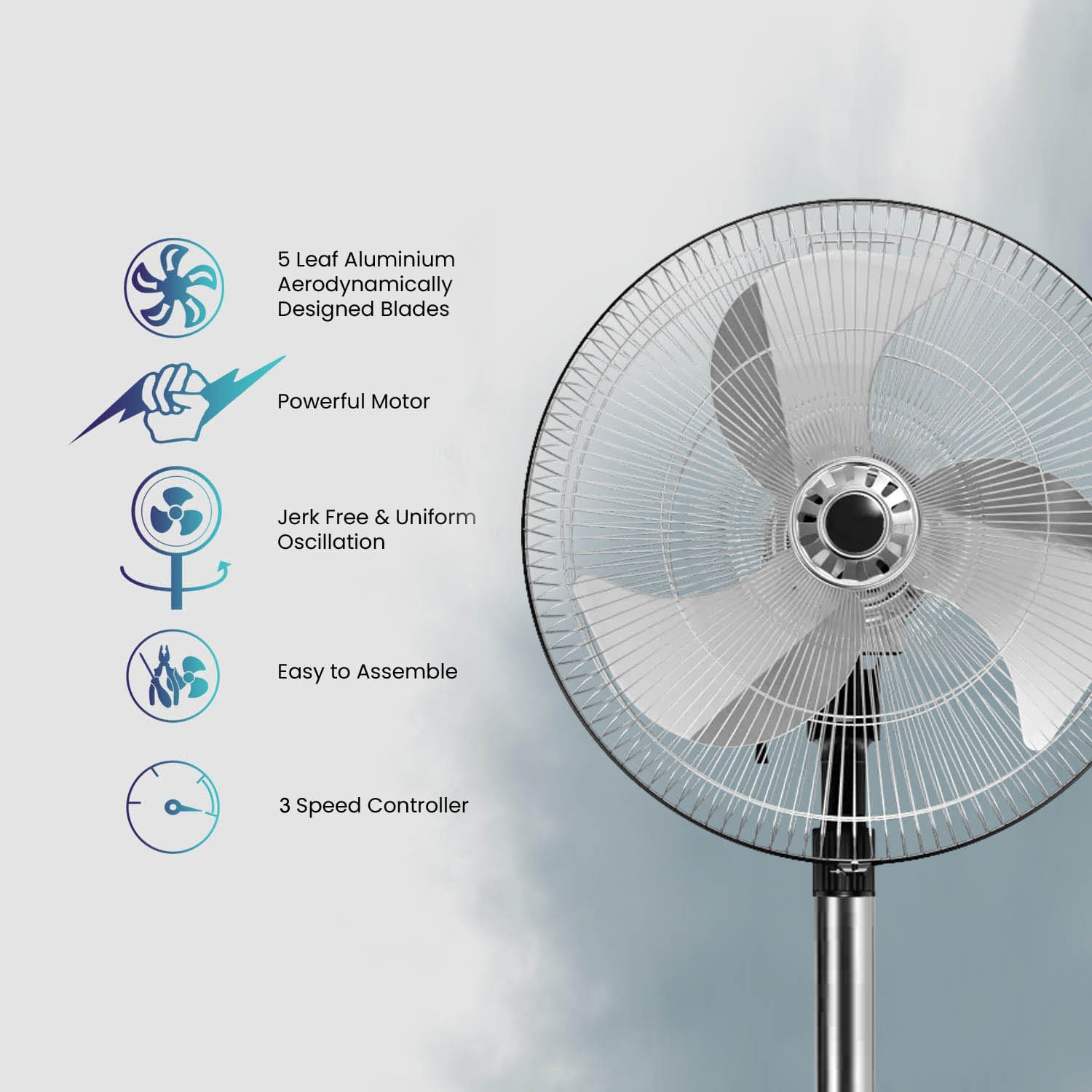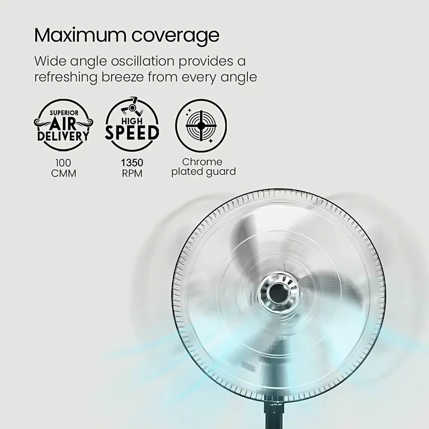 V-Guard 450MM Pedestal Fan with 1350RPM and 2 Year Warranty, Black, Fanza MPF Delight Neo, Steel