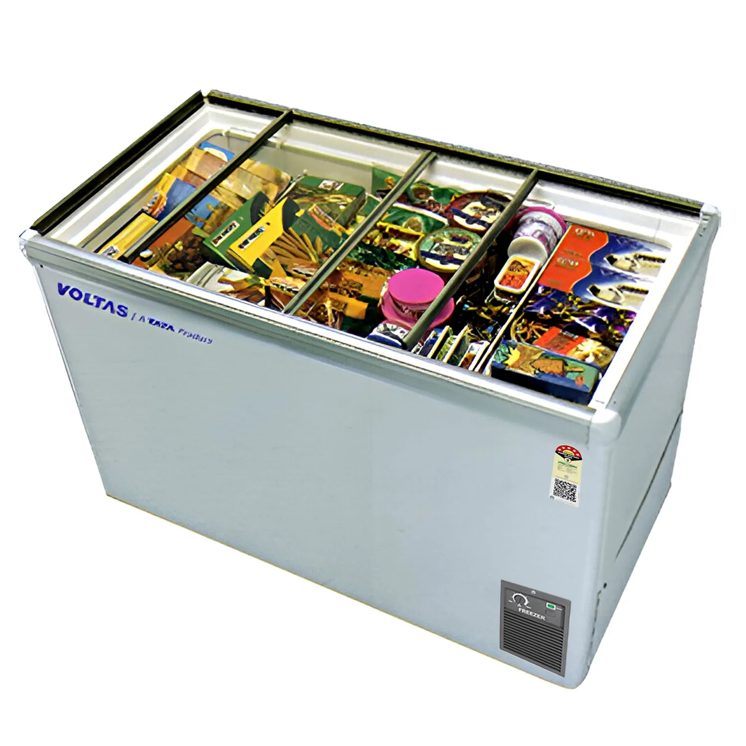 Voltas GT340, 275 Litre Glass Top Deep Freezer with 5 Star Rating and Inbuilt LED Lights, White