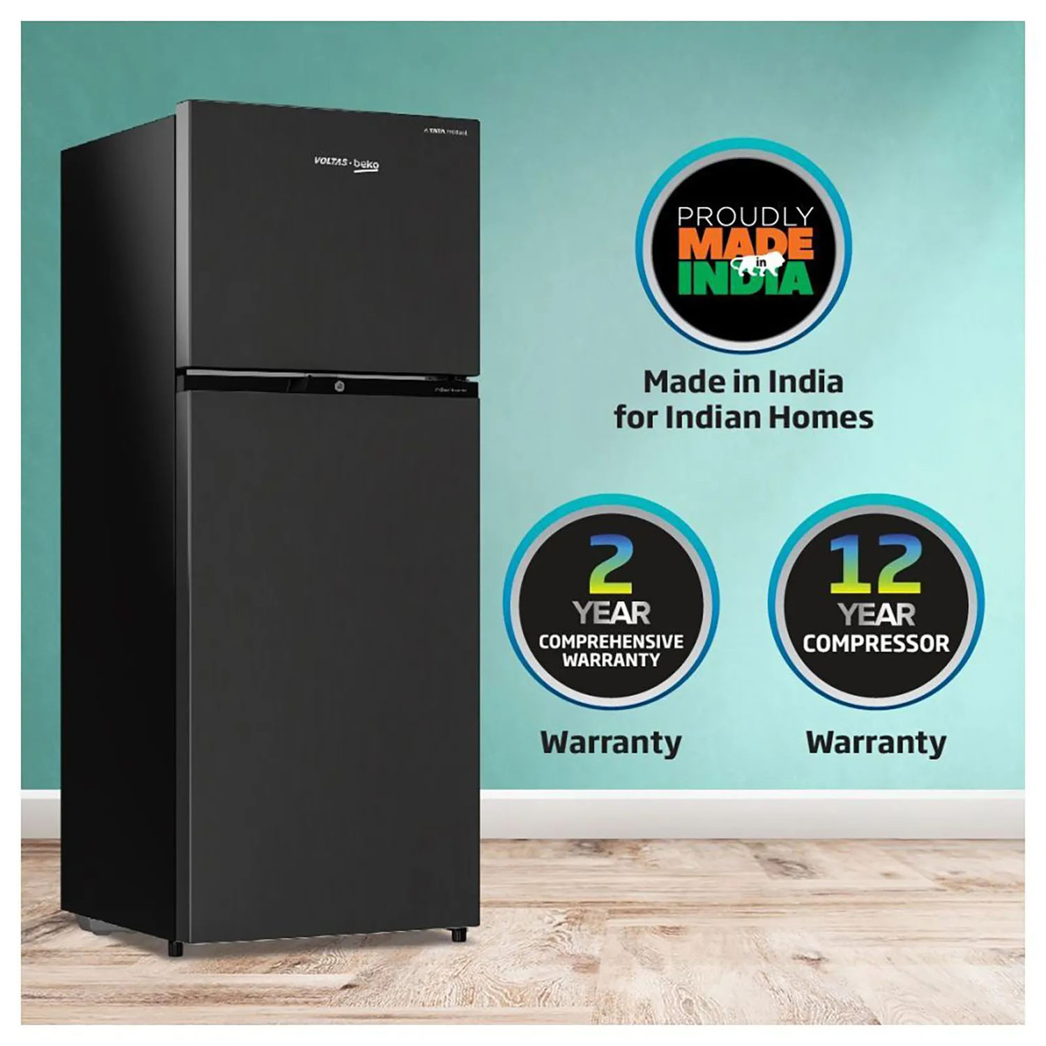 Voltas Beko 250 Litres 2 Star Double Door Refrigerator with Inverter Compressor and Stabilizer-Free Operation, Wooden Black, RFF295D/W0XBR