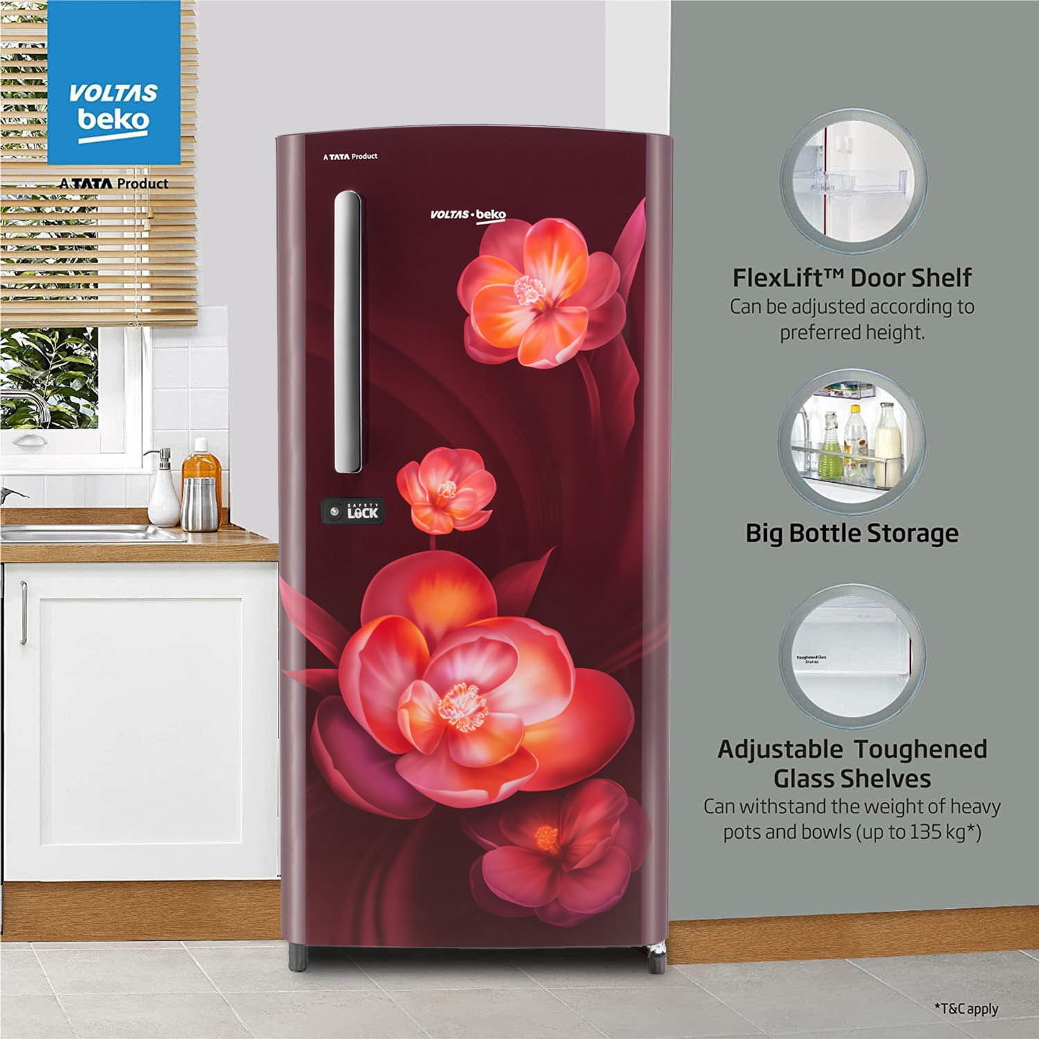 Voltas Beko-A Tata Product 175 Liter 2 Star Direct Cool Single Door Refrigerator, Chiller Zone and humidity-controlled crisper, Aria Wine, RDC208D/S0AWE0M0000GD