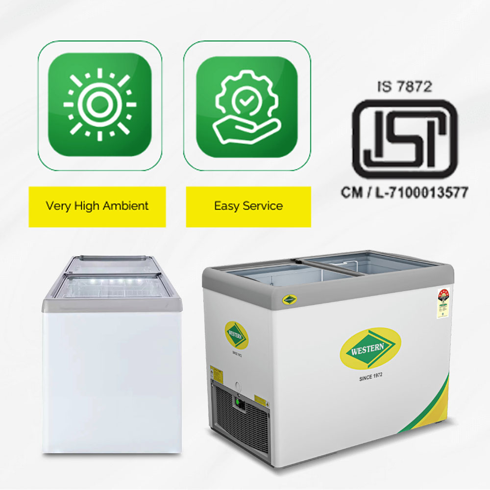 Western 311 Liter 5 Star Glass Top Double Slide Door Chest Deep Freezer, Automatic Defrost System, White, F350-GL