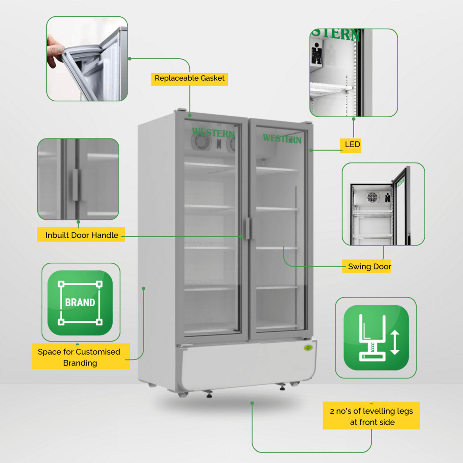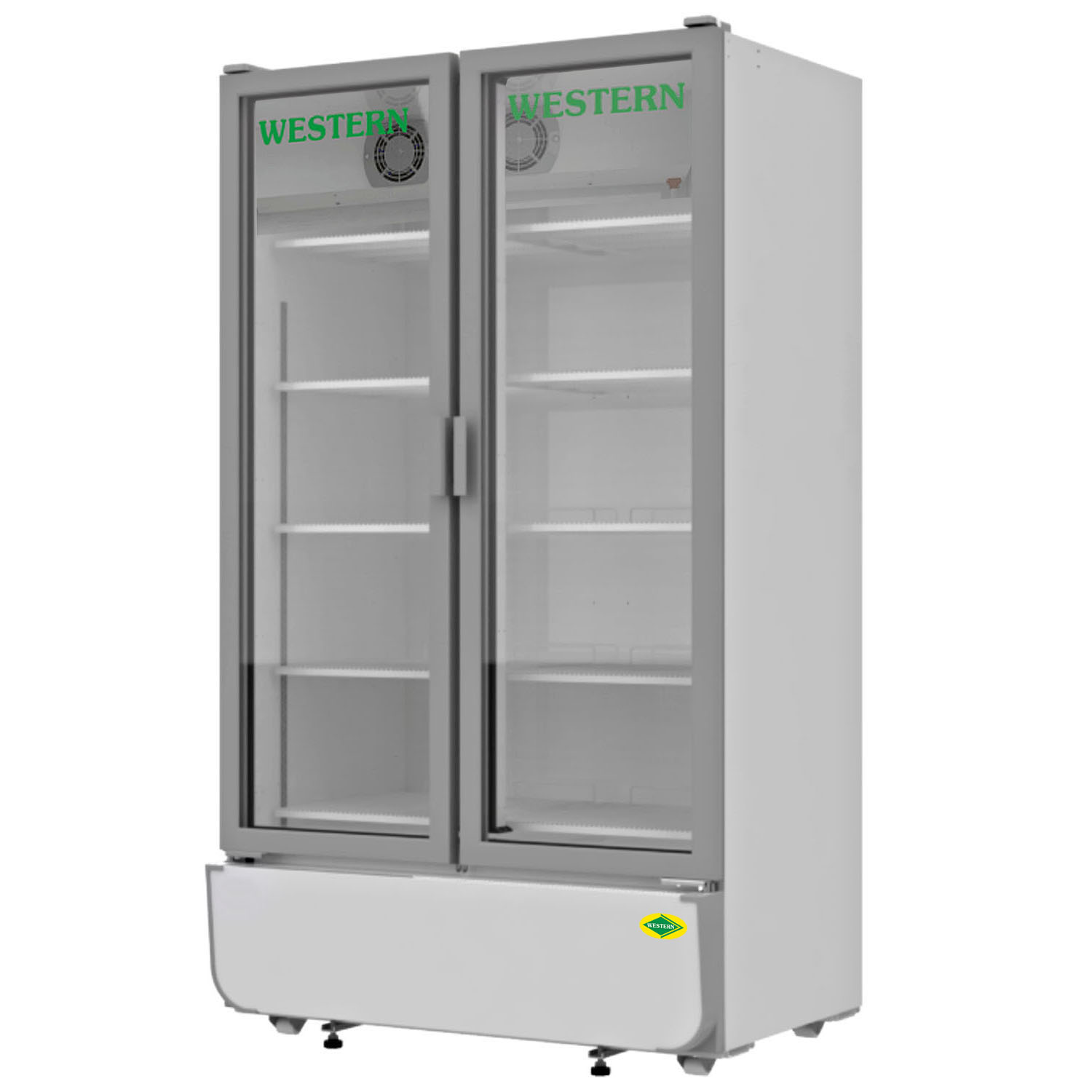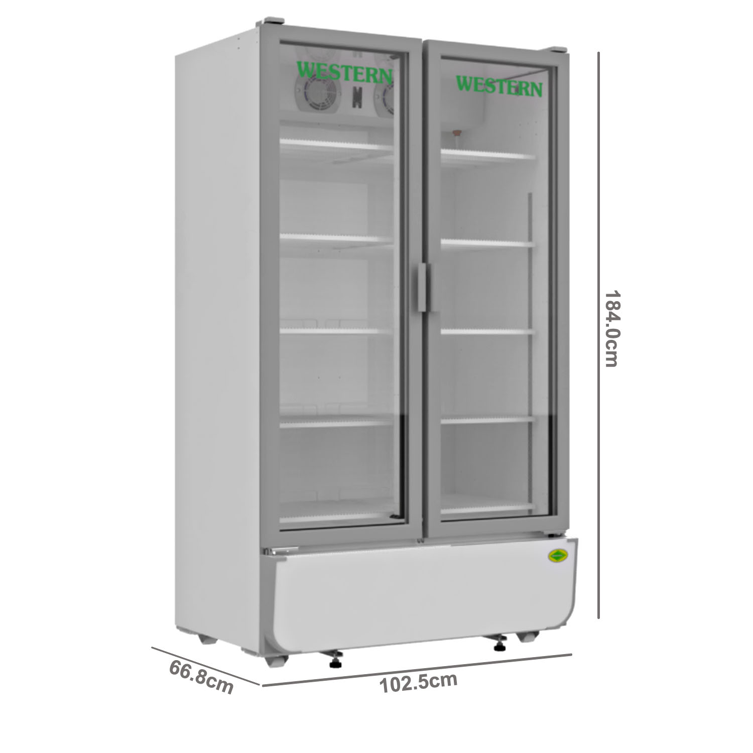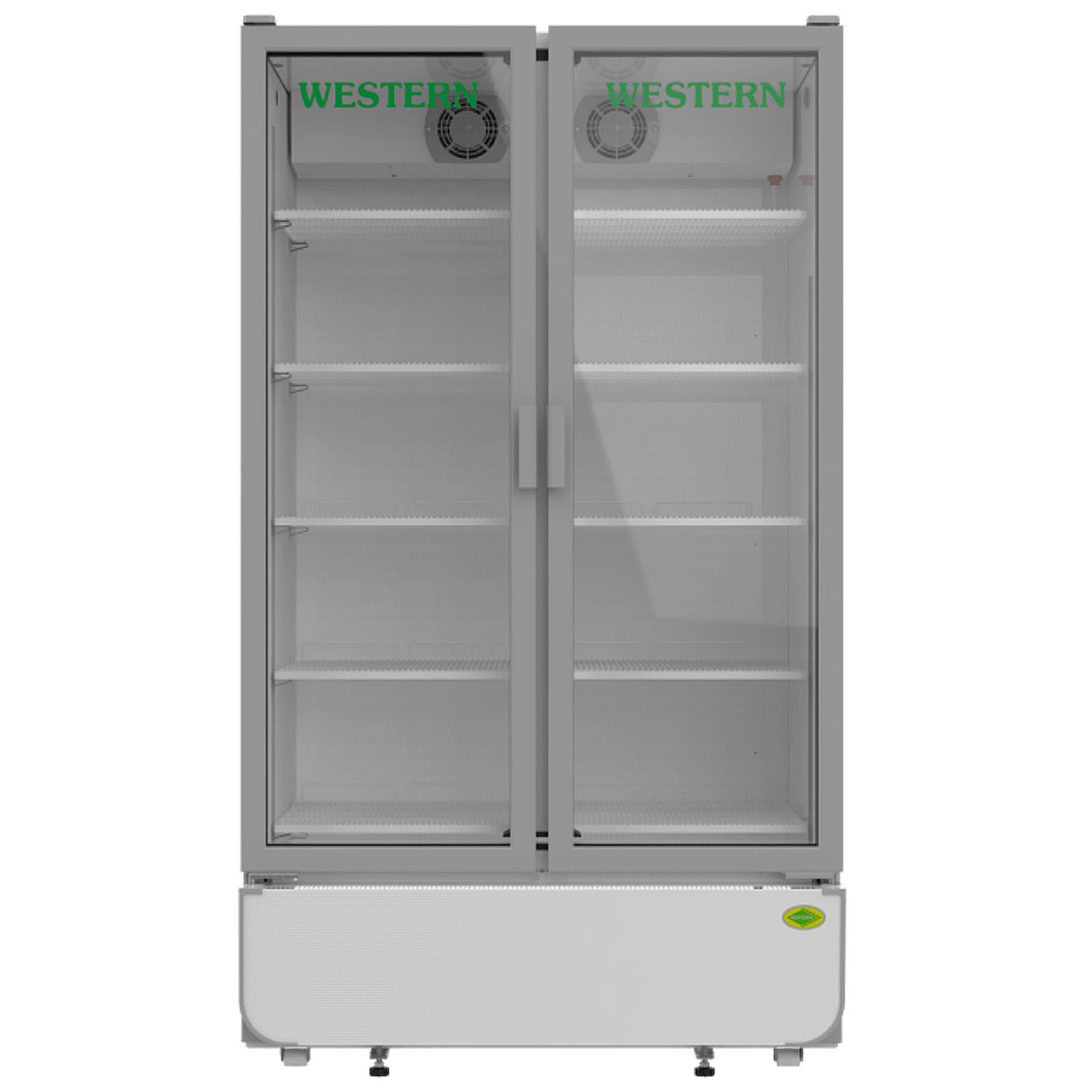 Western 695 Liter Visi Cooler Glass Standard Double Door Commercial Refrigerator, Automatic Defrost System, White-Grey, SRC810-GL