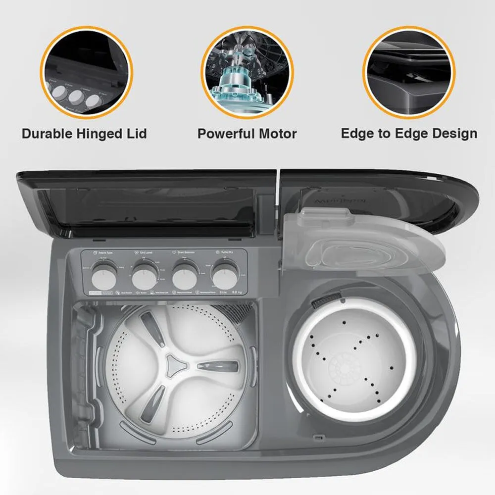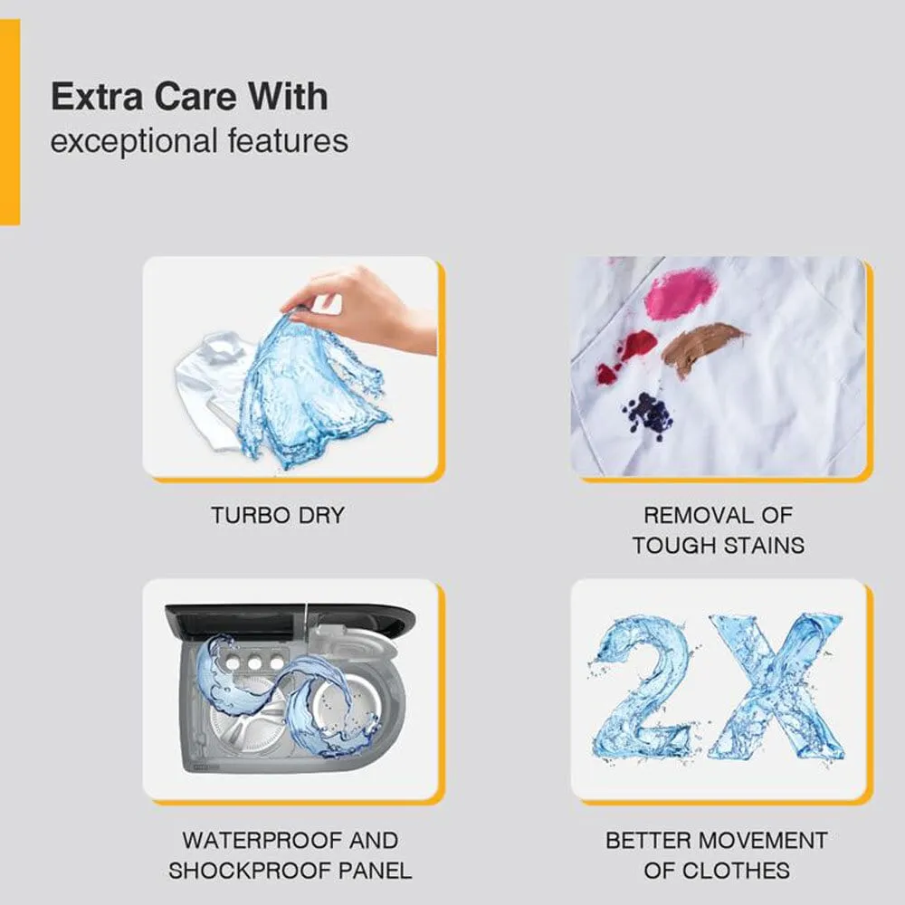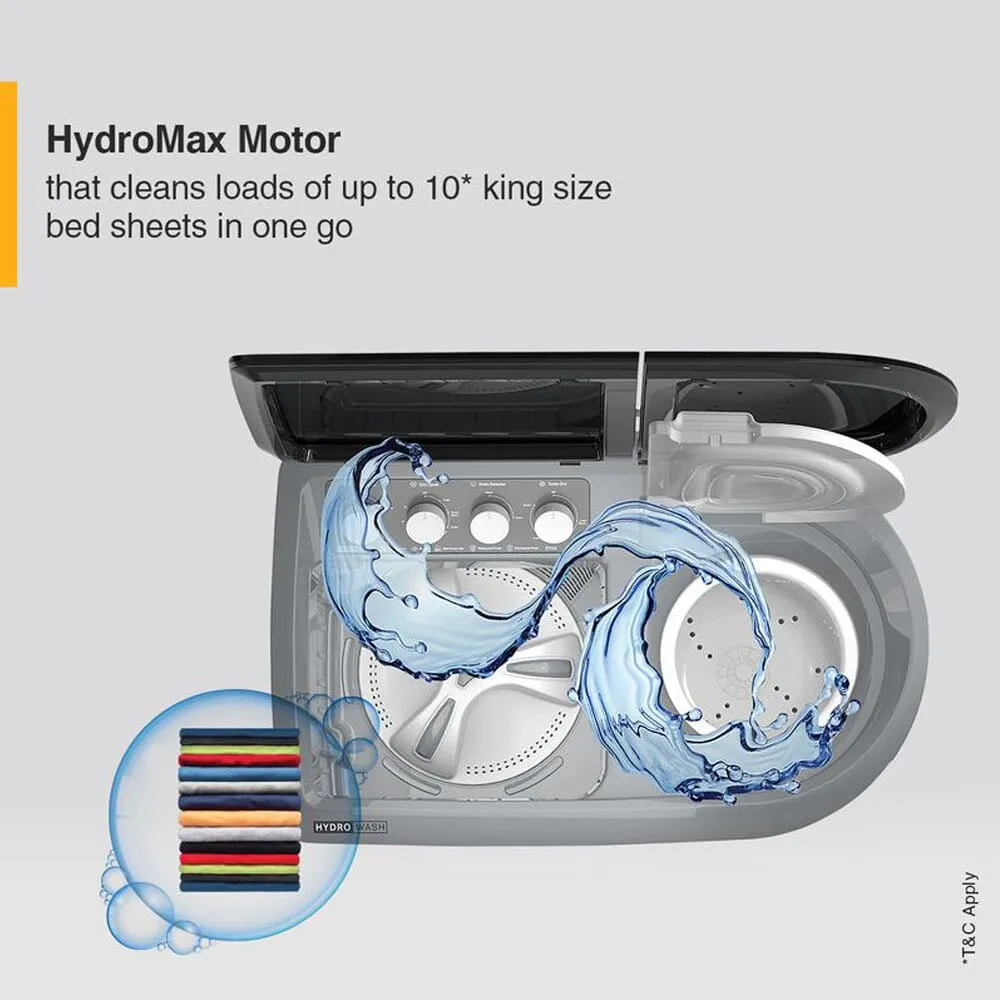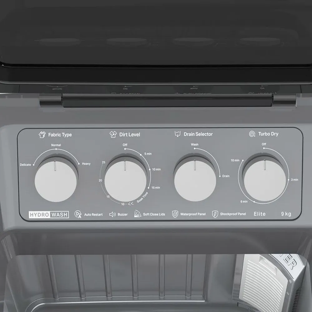 Whirlpool Hydro Wash Elite 9, 9 KG Semi Automatic Machine with Soft Close Lid and 3D Wave Technology Waterproof and Shockproof Panel, Grey